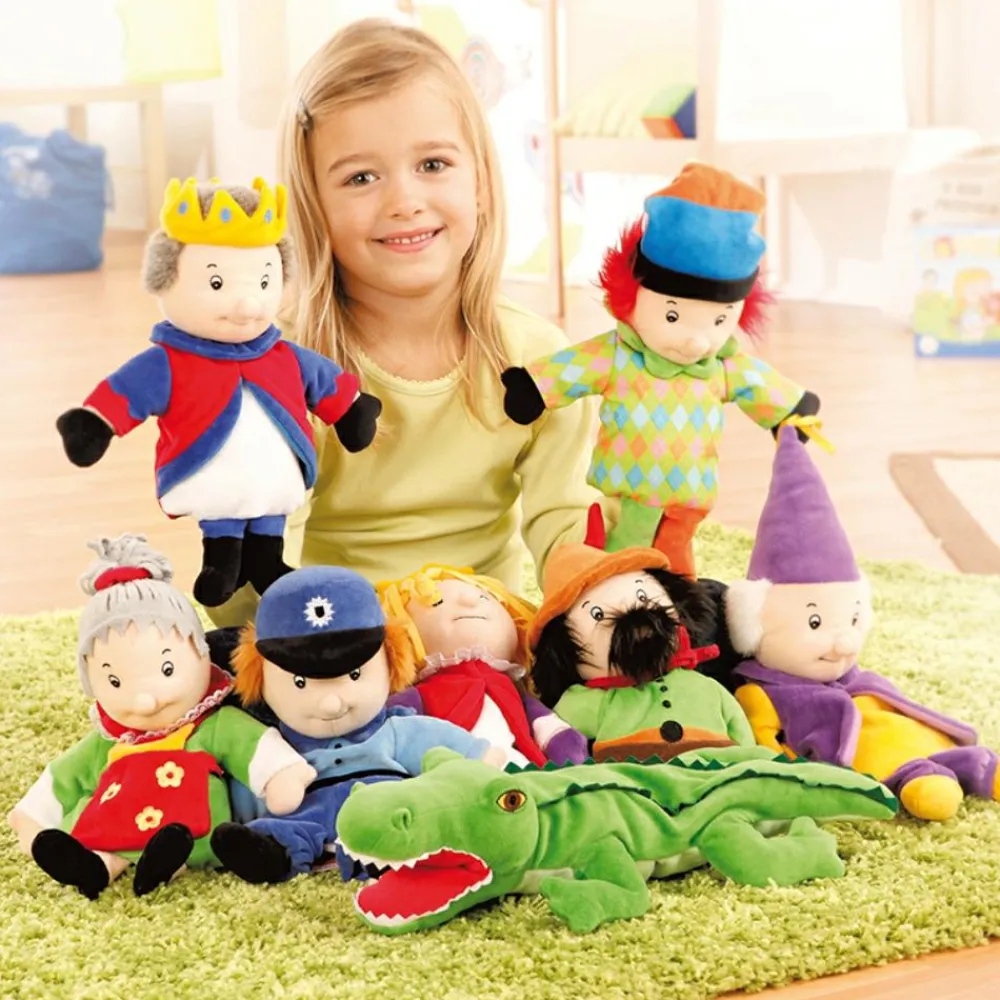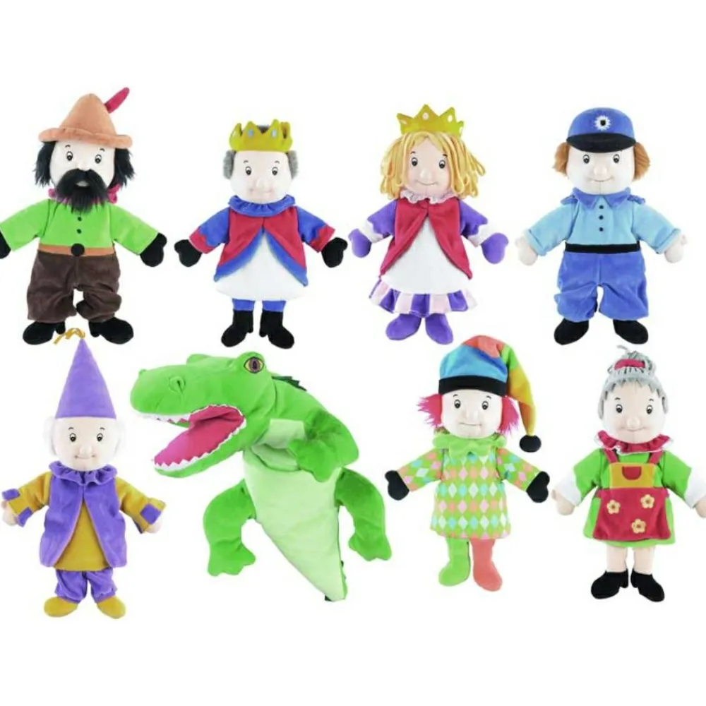 Disse hånddukker er perfekte til dukketeater. Sættet består af 8 forskellige karakterer: