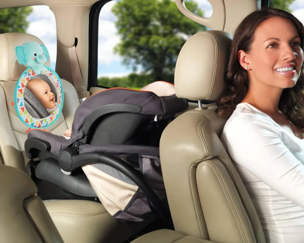 Din babys eget ansigt er den bedste underholdning. Når I skal på tur, så sæt babyspejlet med den søde elefant fast rundt om hovedstøtten, så har dit barn noget sjovt at grine af.