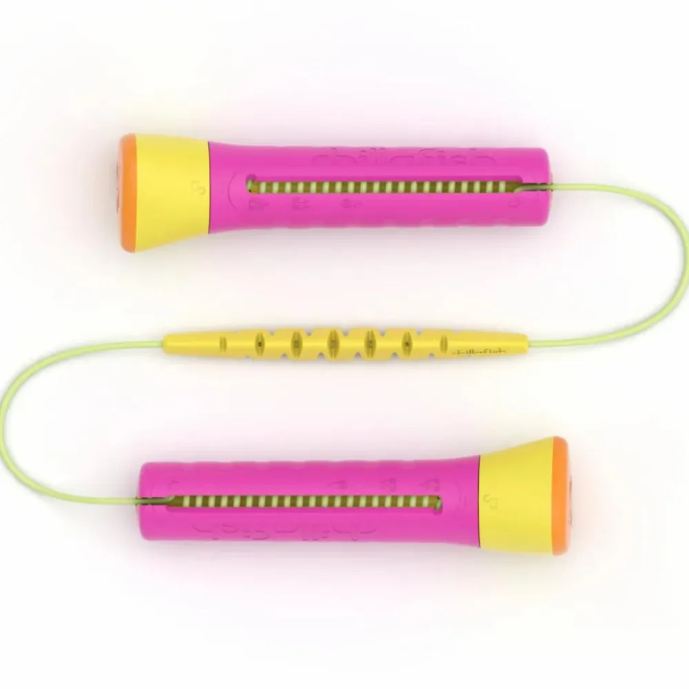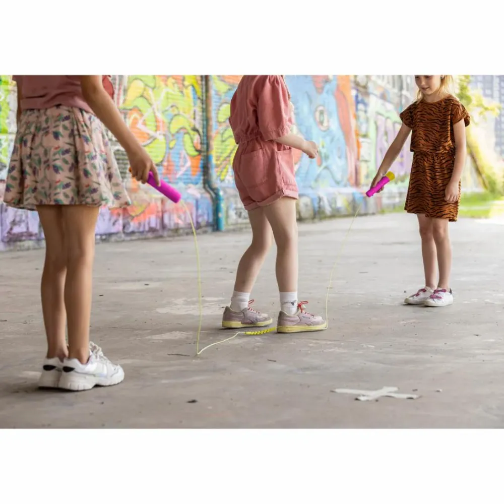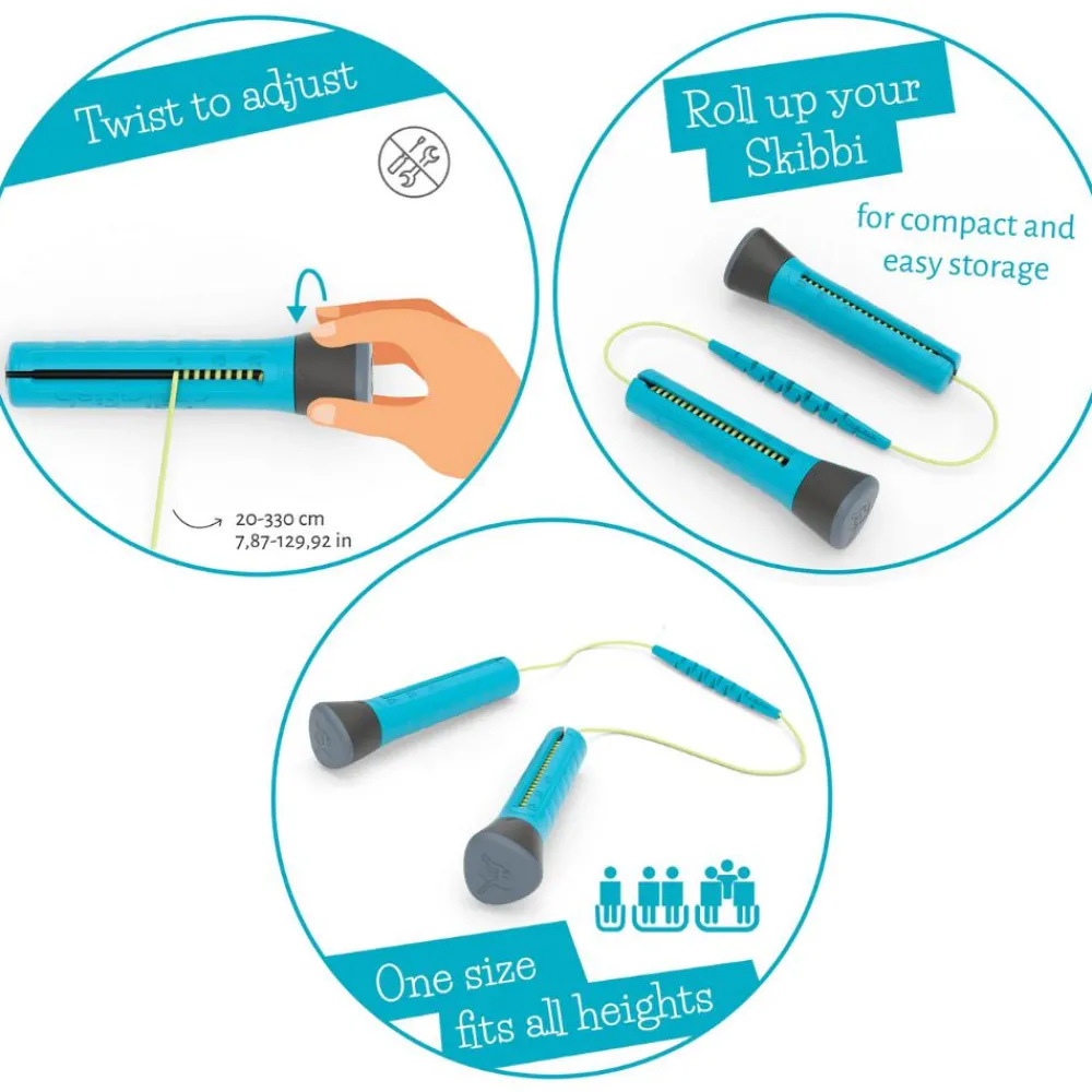 Med et drej på håndtaget kan dit barn nemlig ændre længden på sjippetovet. Det er smart hvis flere søskende eller kammerater på forskellig højde deler sjippetov. Og det er drønpraktisk efter brug, hvis sjippetovet med et drej kan trækkes sammen, så det ikke fylder særligt meget i kurven med udelegetøj, eller hvis det skal med i skole eller på ferie.
