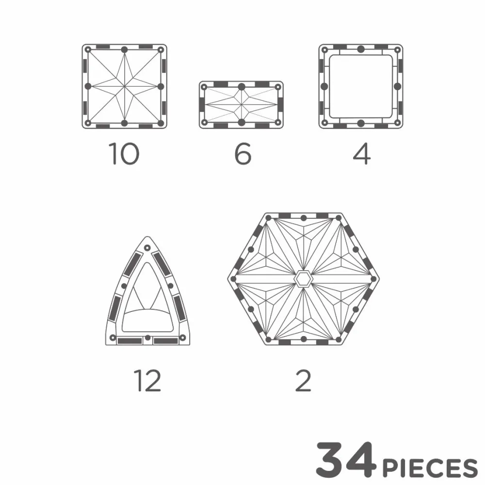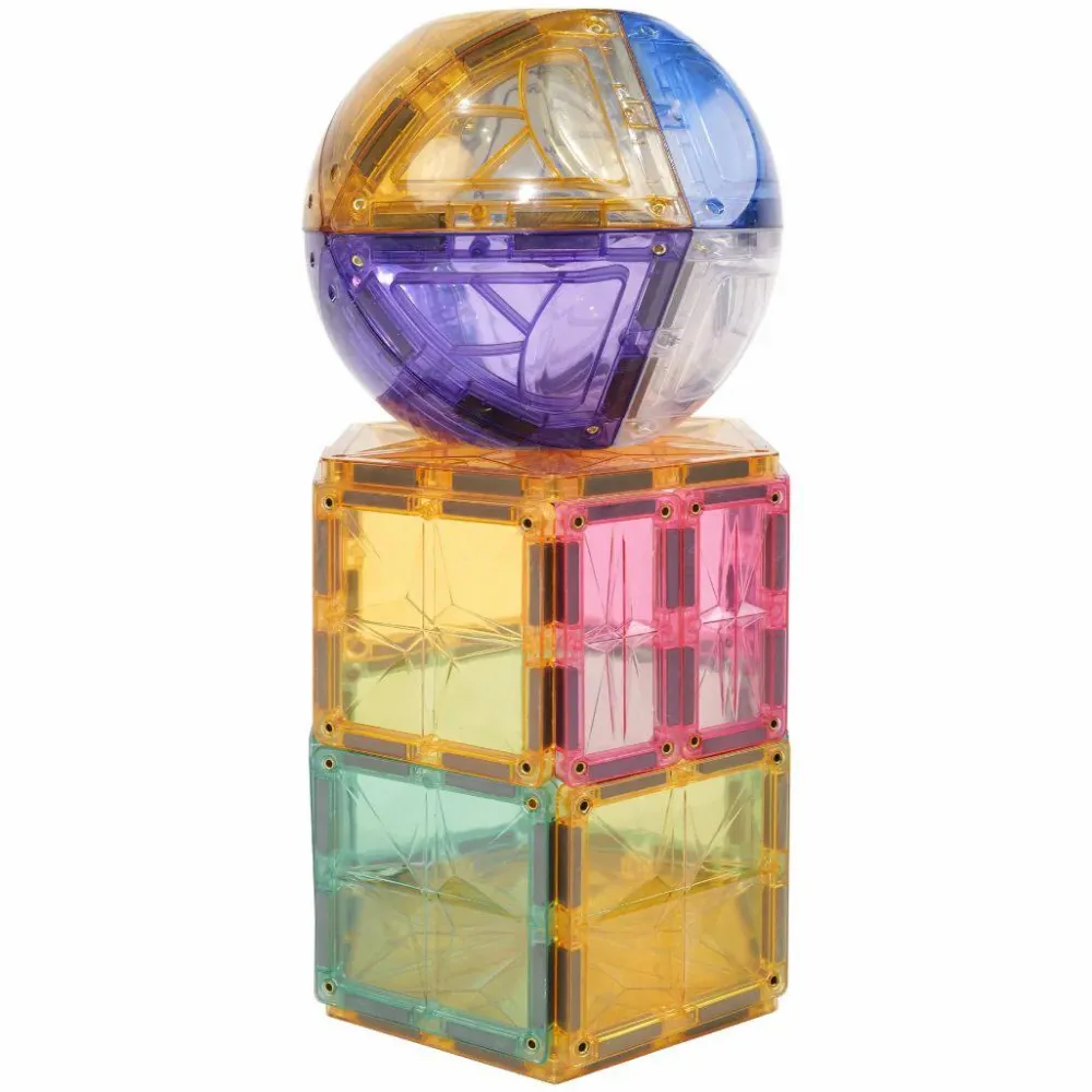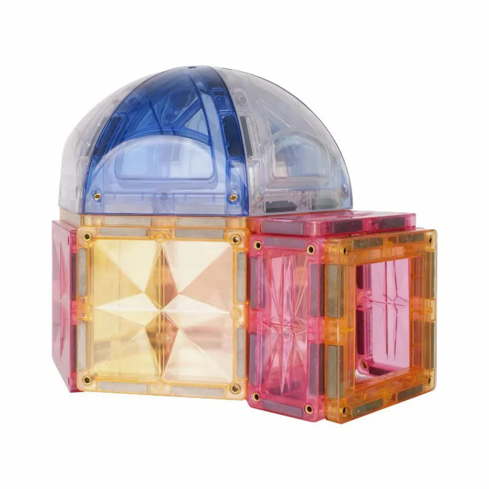 En god startpakke til at introducere dit barn til byggeleg med magnetiske byggefliser. Særligt for denne pakke er at dit barn kan afslutte sit pastelfarvede byggeri med en flot kuppel eller to.