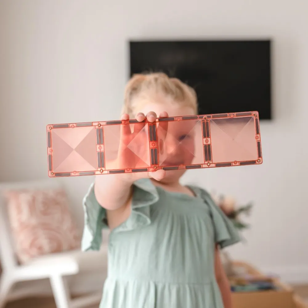 Dette sæt i flotte pasteller er sjovt at bygge med alene eller som supplement til fx vores Connetix kuglebanesæt, som så kan bygges endnu højere.