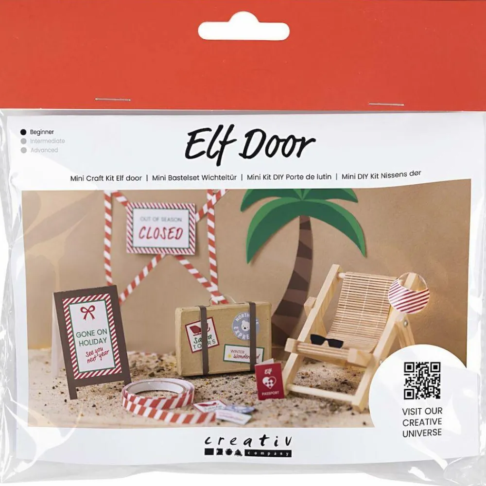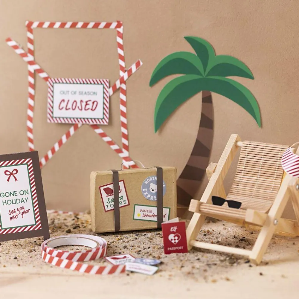 Forvandl jeres nissedør i slutningen af december med dette sjove sæt, der klart fortæller historien om, hvordan Drillenissen nu er taget til de varme lande.