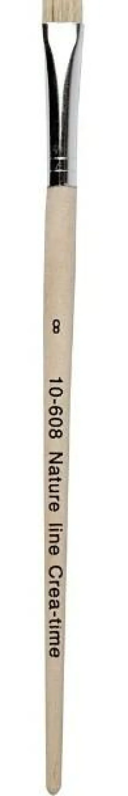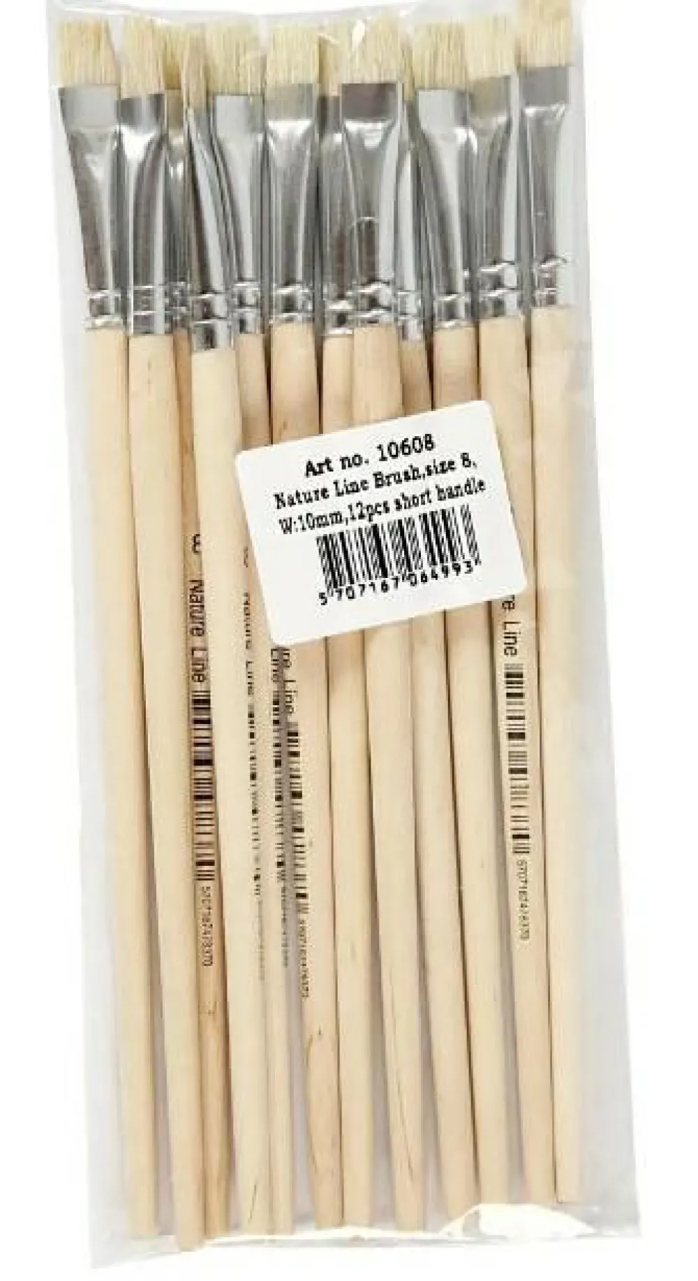 Her får du hele 12 styks flade pensler i størrelse 8. Det svarer til 10 mm bred pensel og at den er 18,5 cm lang.
