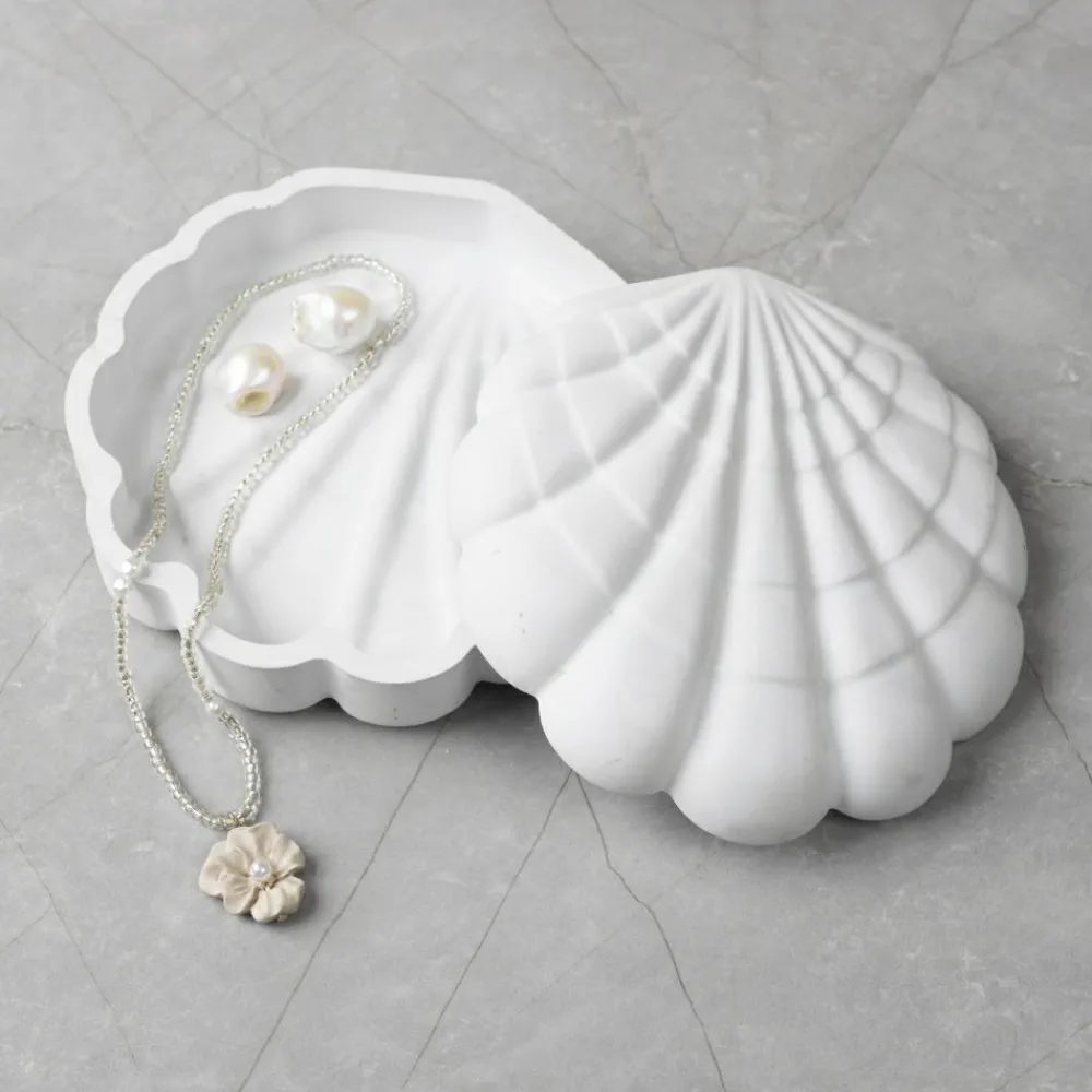 Fleksibel silikoneform som du kan bruge igen og igen til at støbe en fin muslinge-æske af beton, gips eller resin-støbemix.