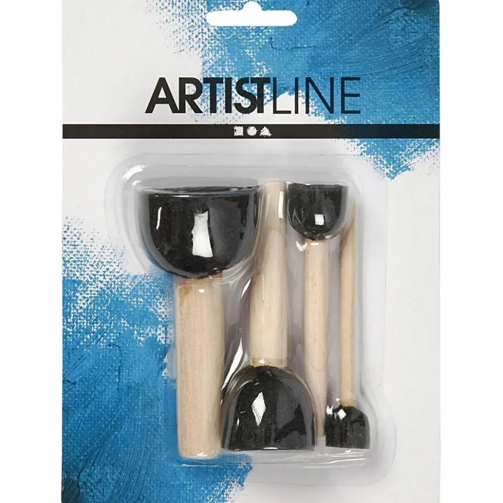 De fire skum-pensler er 13, 20, 25 og 35 mm store i diameter.