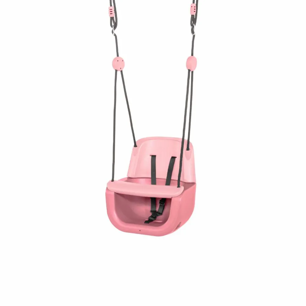 Spænd dit barn fast i gyngen med fast ryg og 3-punkt sele, der sikrer at dit barn sidder solidt og trygt med ryggen tæt op af ryglænet.