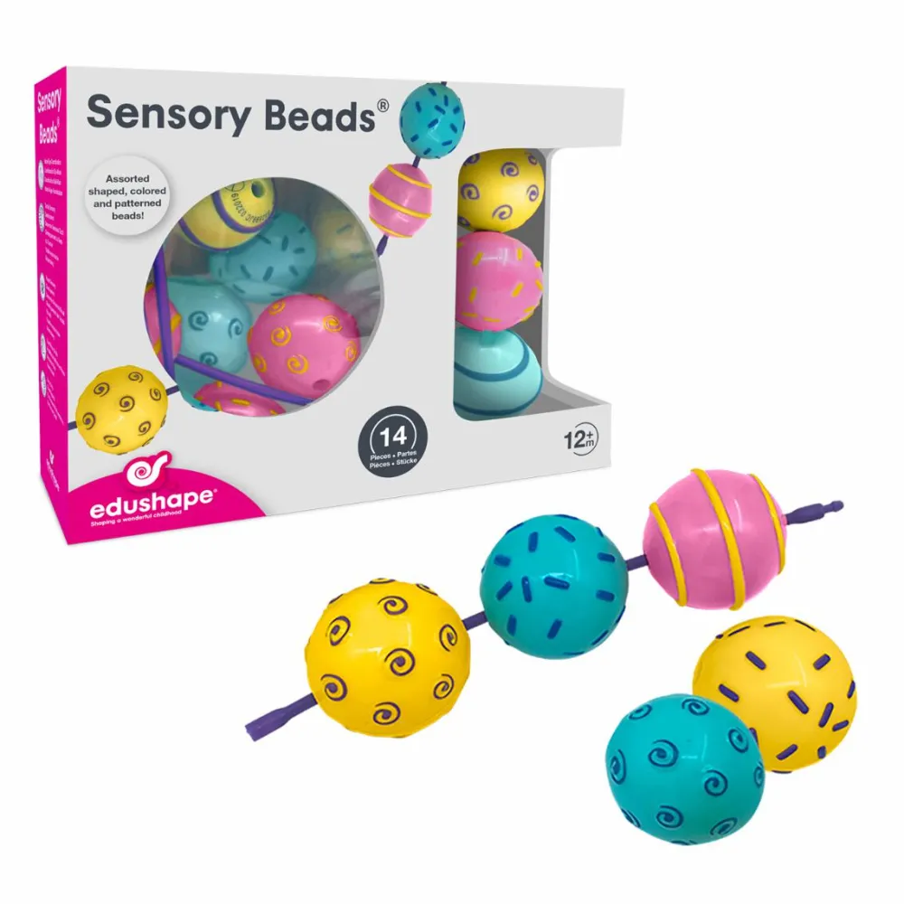 Når de flotte perler skal føres på snoren, lærer dit barn at bruge sin hånd-øje koordination, både når man skal fange perlen, og når snoren skal ramme hullet og trækkes igennem.