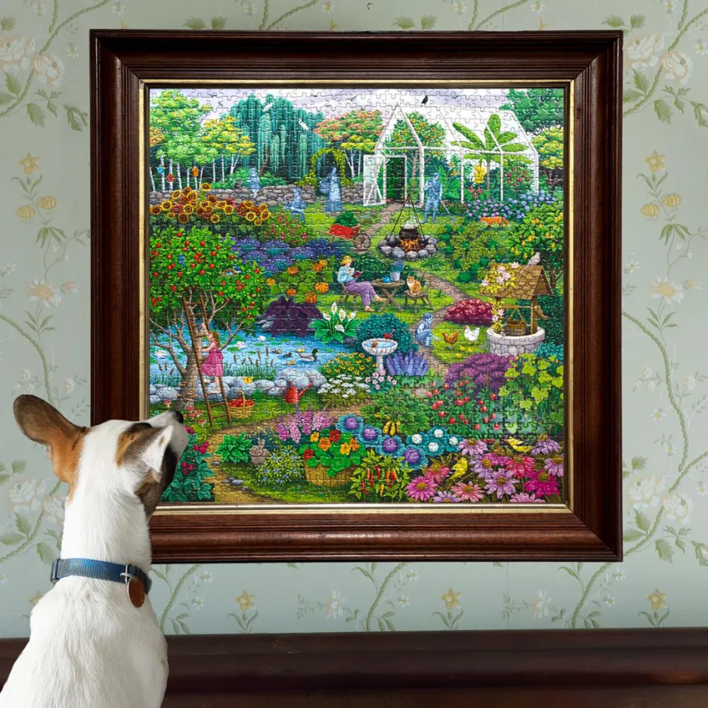 Kvadratisk puslespil med flot motiv af den høstklare have illustreret af Vasilisa Romanenko.