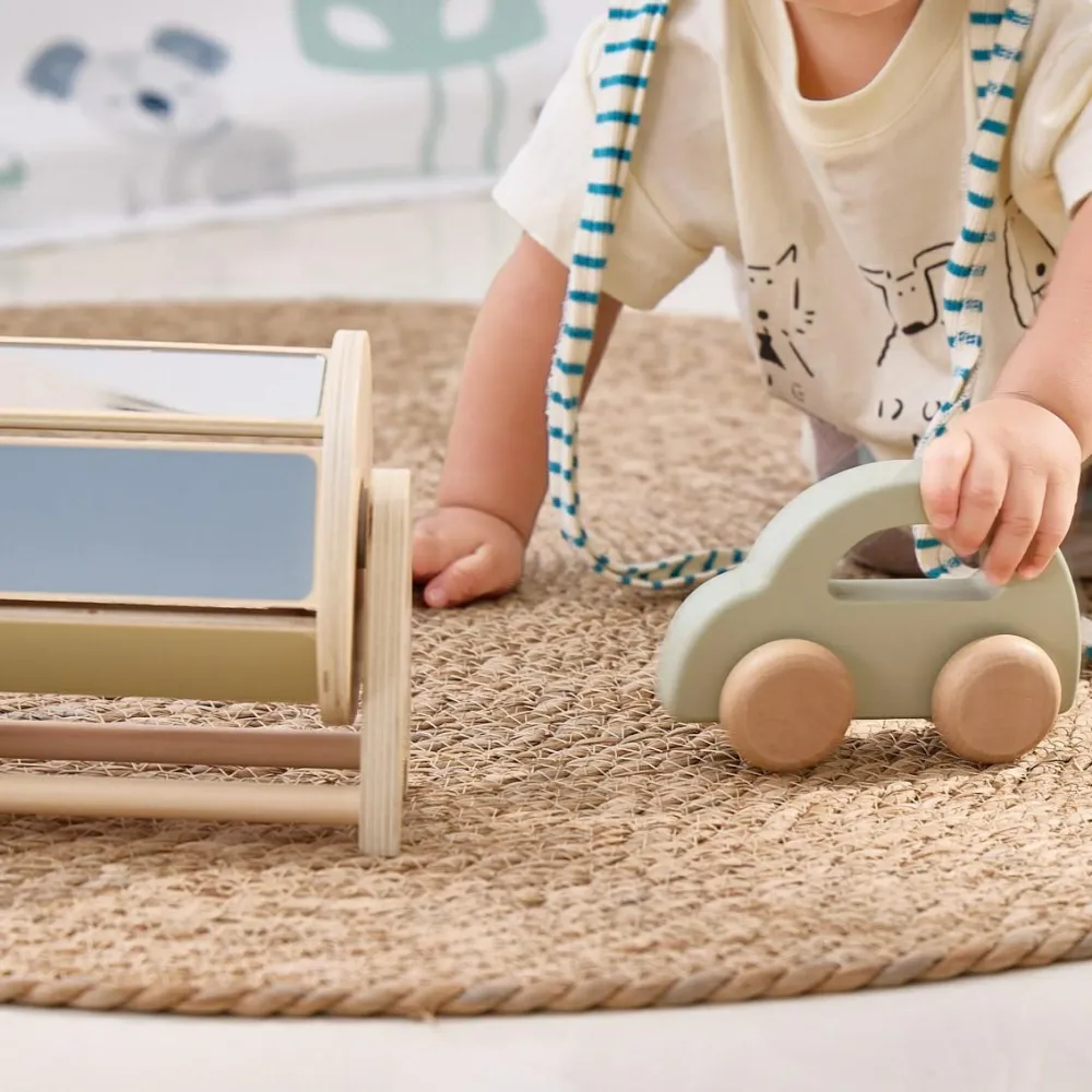 En skøn samling af trælegetøj, der er særligt udvalgt til at hjælpe dit lille barn med at udvikle de kompetencer, som børn ml 6 og 12 måneder er klar til at prøve kræfter med.