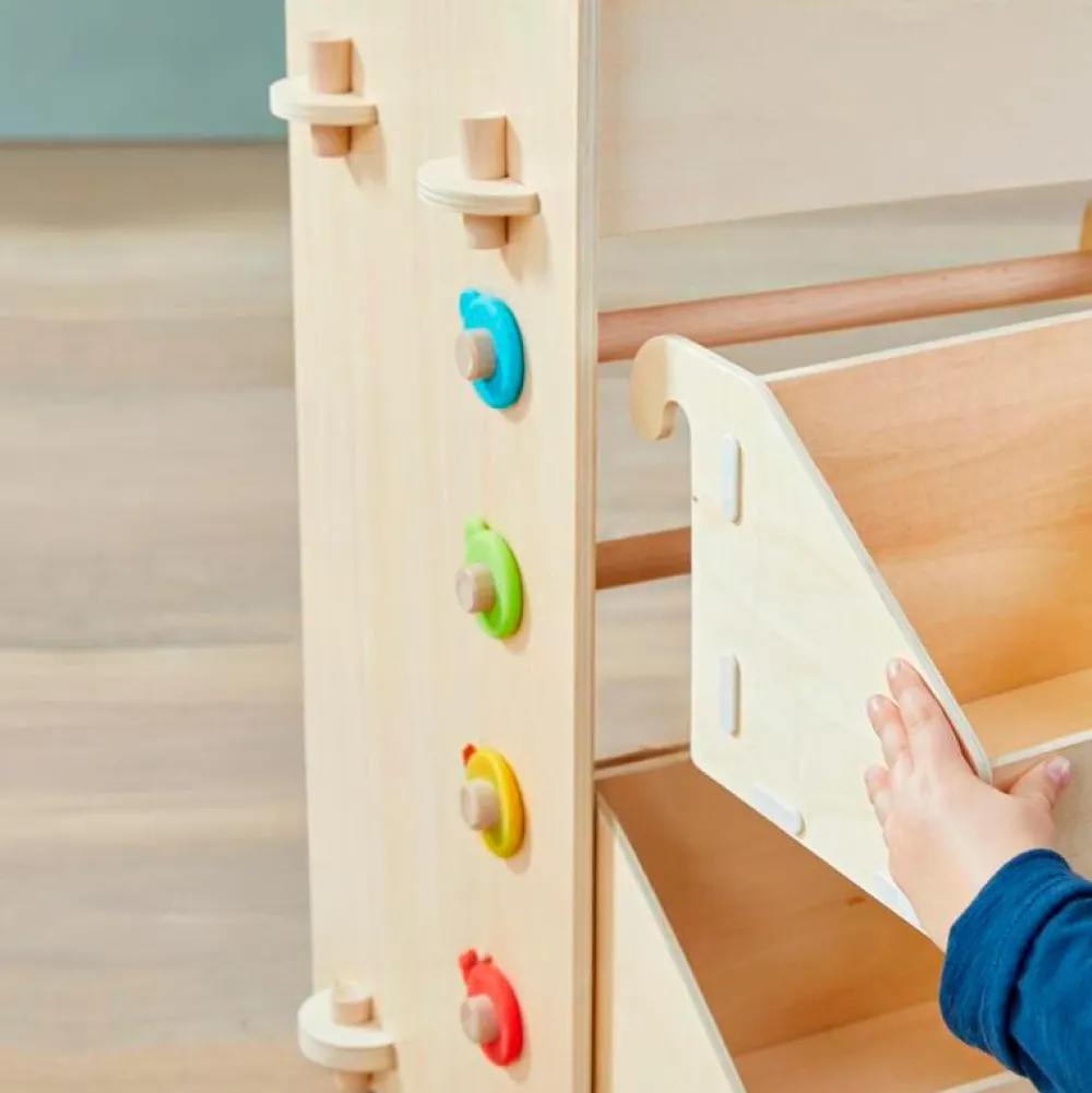 Men denne legestation kan nemt og uden værktøj skifte mellem at være netop legekøkken, værktøj og butik. Det er sørme godt tænkt. Og børnene kan sagtens være med til at skifte rundt i opsætningen af legestationerne.