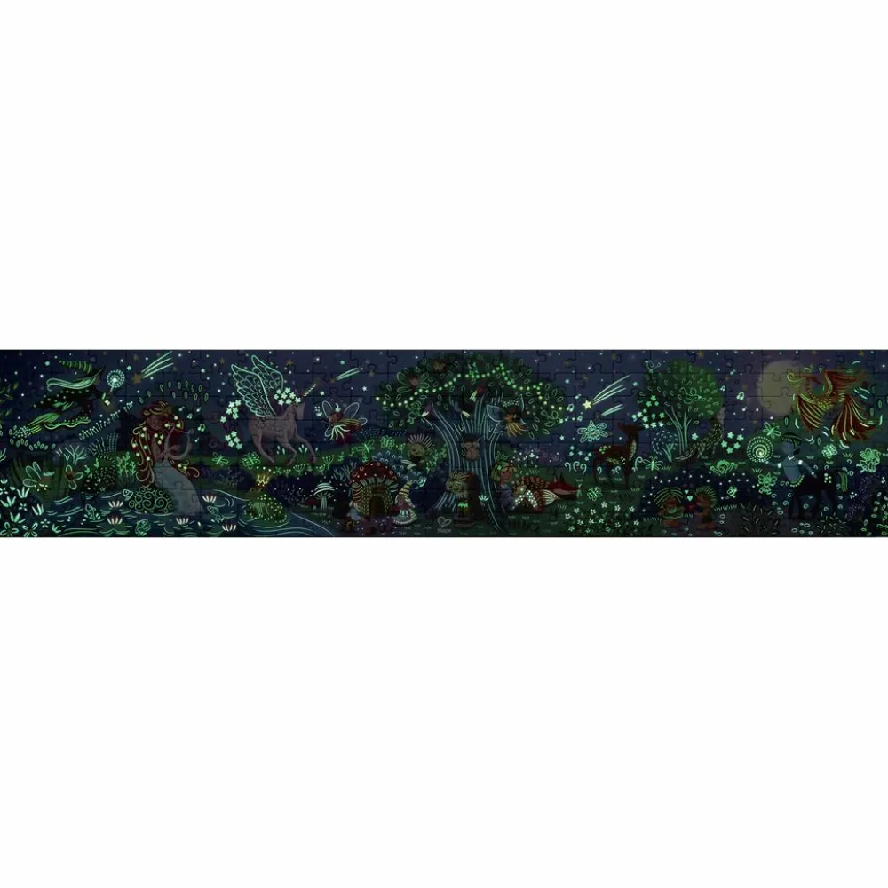 Et stort gulvpuslespil med 200 brikker, hvor der er den ekstra finte, at den magiske skov lyser i mørke.