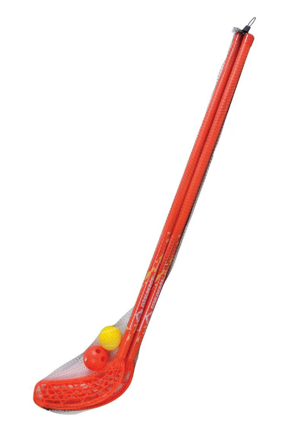 Med sættet er der to stave og to bolde. Dermed kan I både tage en kamp med hinanden, men også øve lidt med hver sin stav og bold.