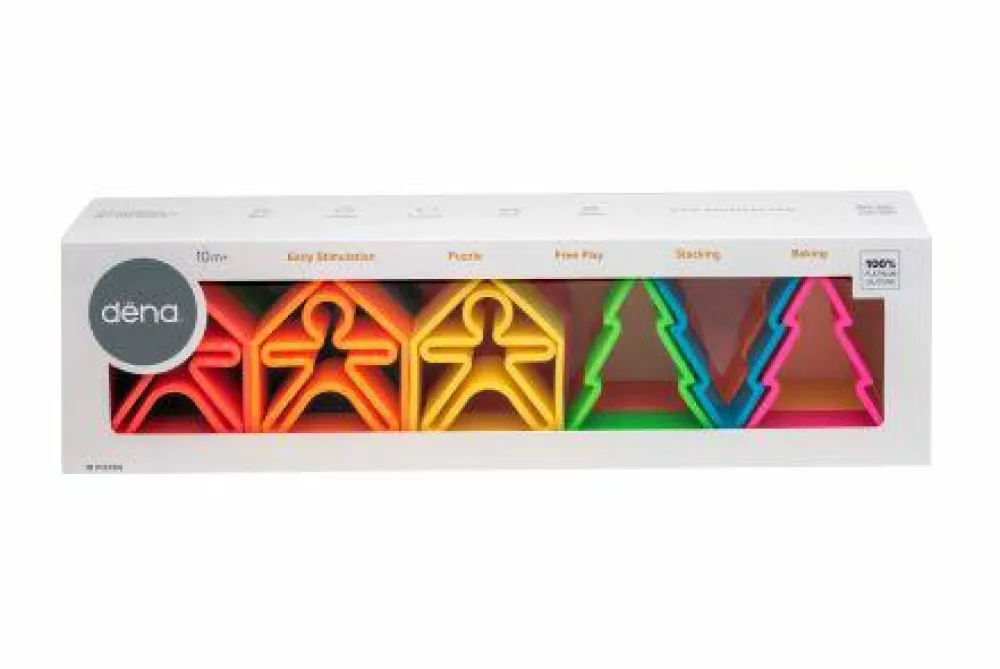 Sansemotoriske forme i silikone. De mange figurer kan leges med over en længere årrække. Det lille barn vil gribe om dem, bide i dem og iagttage dem. Senere kan de lege mere rollebasserede lege og måske sortere efter farver.
