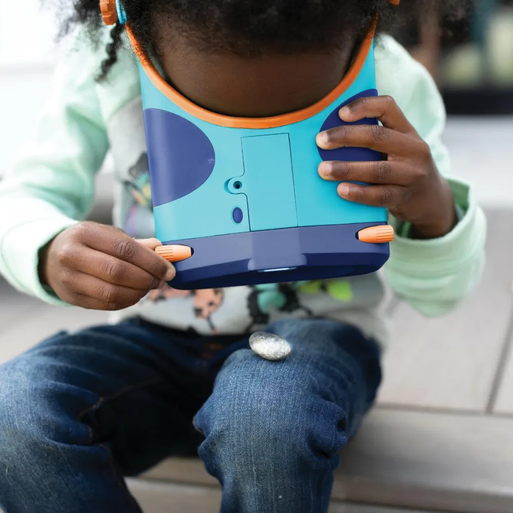 Jo mere I opholder jer derude, jo flere spørgsmål vil der melde sig. Det er altså helt utroligt, så spændende en et krible-krable-dyr fra haven, en sten på stranden, en vandpyt i gården eller en skovlfuld jord fra altankassen kan være, hvis I blot går helt tæt på. Opfordr dit barn til at spørge og finde svar med godt udstyr til at studere naturen.