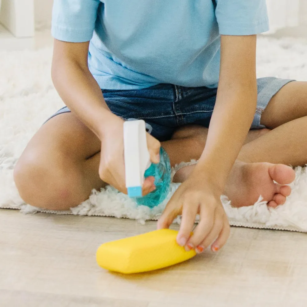 Så kan dit barn være med til at støve af og lege at gulvet bliver skrubbet, mens du klarer den rigtige rengøring. Det er en god kompetence at have med i rygsækken, når dit barn skal holde sit eget værelse bare lidt støv- og baktusse-frit.