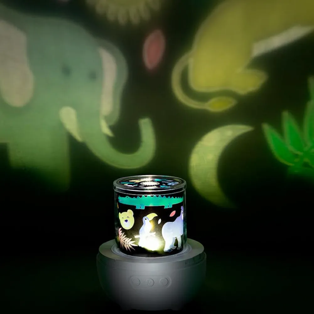 Denne projektor skaber en tryg og fortryllende stemning på børneværelset eller i stuen. Den kan lyse i gult, blåt og hvidt.