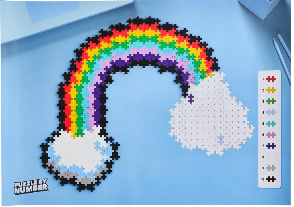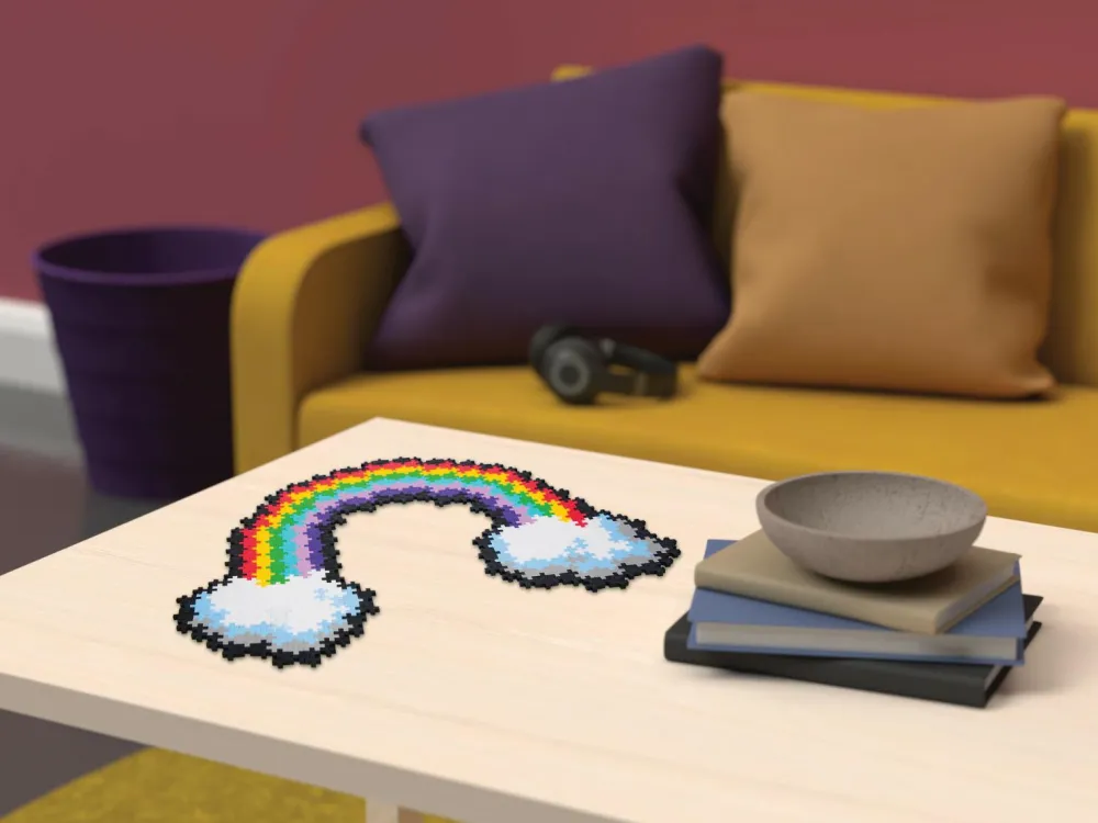 Med æsken her kan dit barn skabe en stor, flot regnbue ud af de 500 Plus-Plus® brikker.