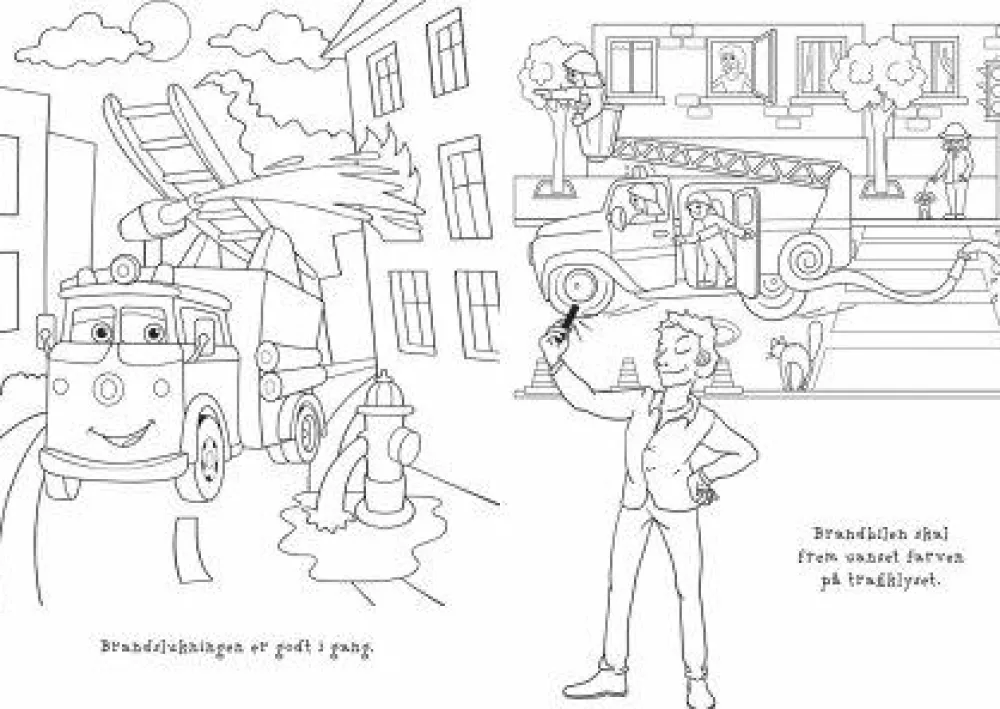 Billederne kan farvelægges med tusser eller med farveblyanter.