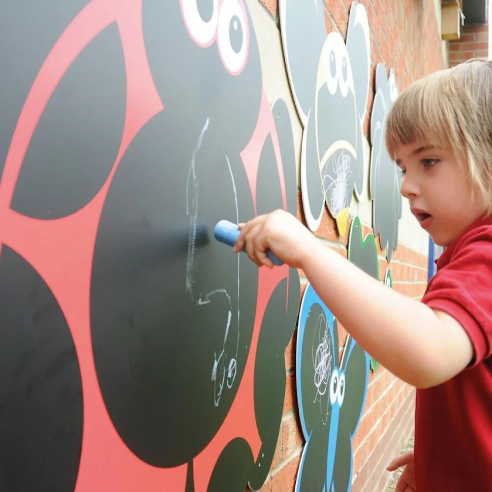 Er der et kedeligt hegn, statik eller rækværk hos jer? Så hæng disse 5 tavler op og lad ungerne slå sig løs med kridt.