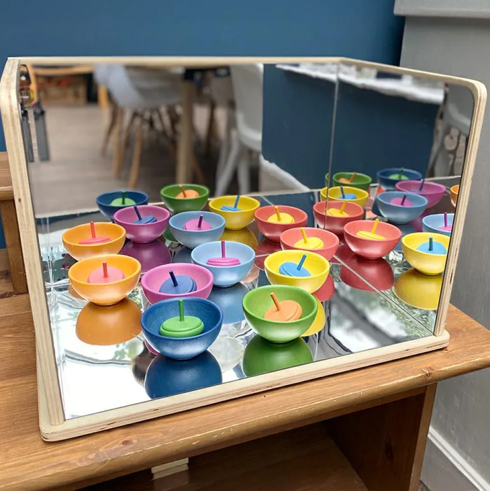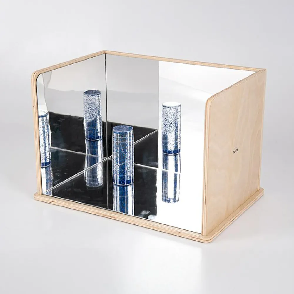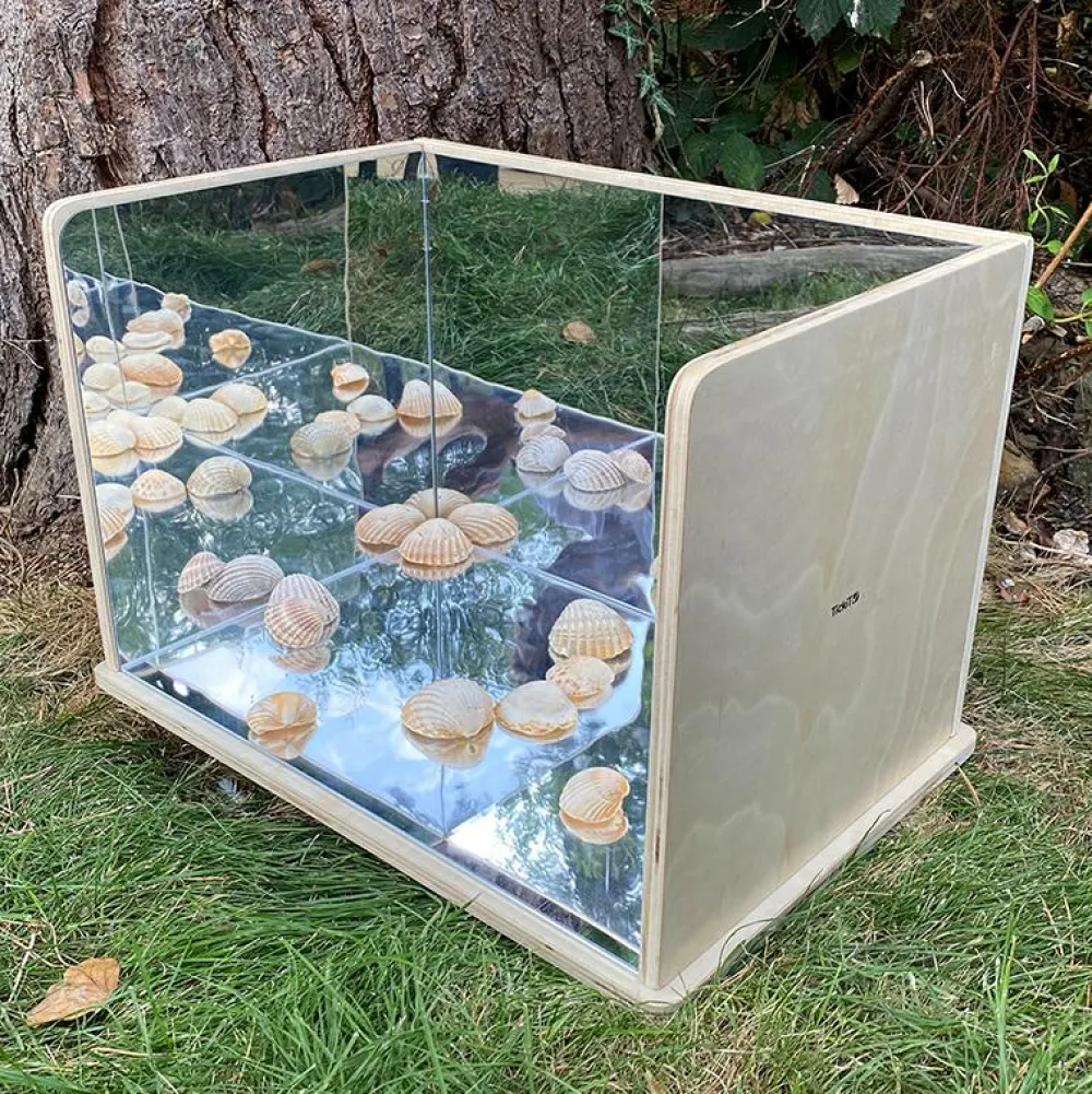 Når dit barns hjerne oplever noget, der sprænger rammerne, så kaldes udforskningslysten frem. Der skal tænkes nye tanker, når fx et æble eller en hjemmesko stilles i dette fine spejl. Der opstår uendelige spejlinger, som får dit barn til at undre sig.