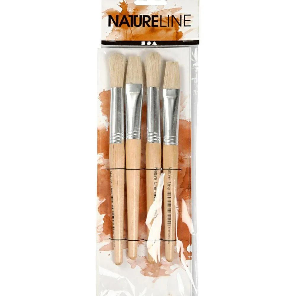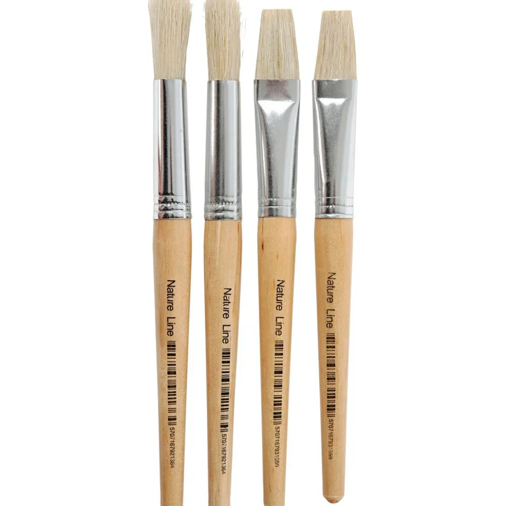 Her får dit barn fire solide pensler i en god størrelse, der er rar at holde om. To flade pensler og to runde giver dit barn mulighed for at mærke forskellen og måske finde sig en favorit.