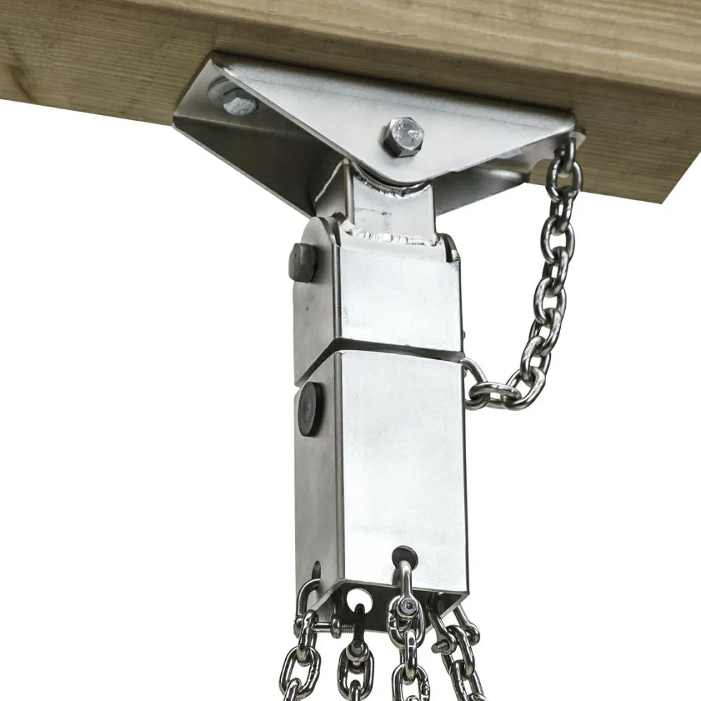 Hvis en fugleredegynge med 4 kæder skal hænge fuldstændigt sikkert i al slags vejr og i årevis, så er det dette gyngeophæng, du skal have fat i. Gyngen kan dreje frem/tilbage og højre/vnetre i kuglelejer af rustfrit stål.