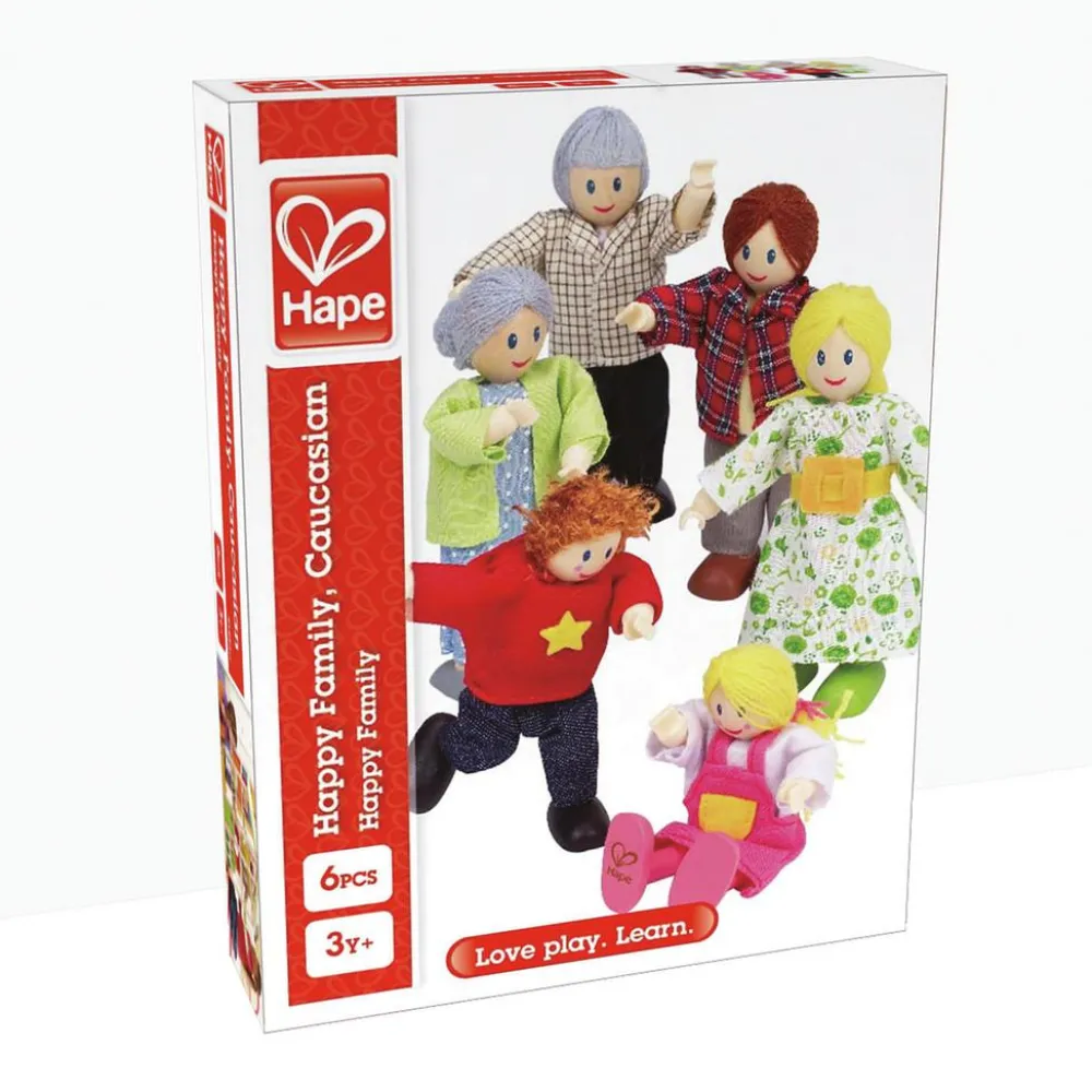 Stor familie til dukkehuset, bestående af to voksne og fire børn, eller er det måske bedsteforældre, børn og børnebørn? De er i hvertfald nu klar til at flytte ind i deres nye hjem.