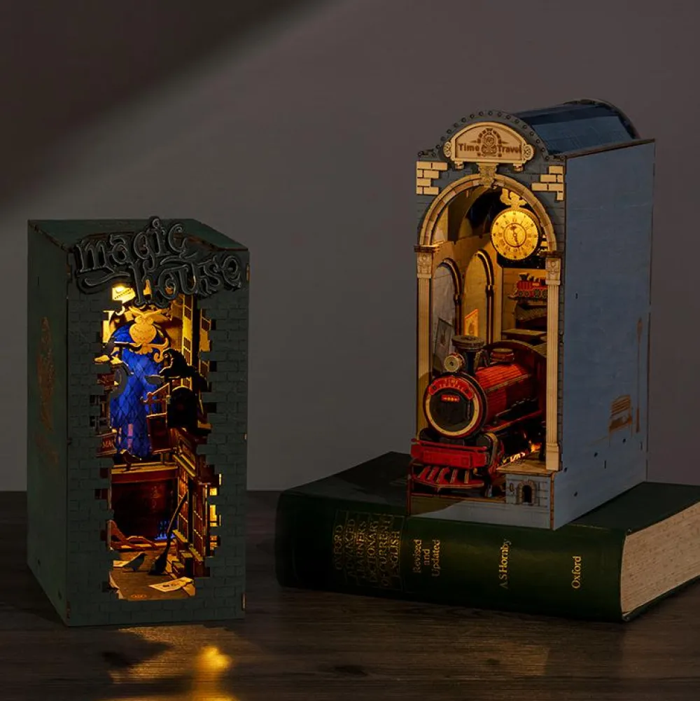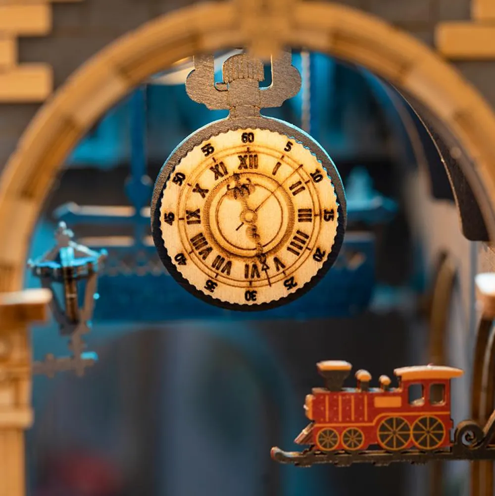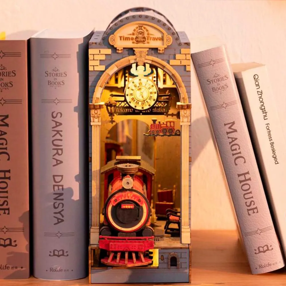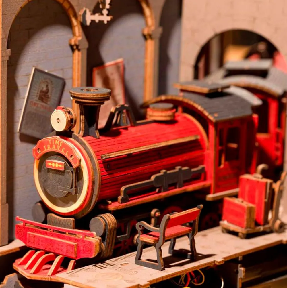 Toget afgår fra din bogreol, når du har bygget denne fine miniature af en togstation komplet med de mest utrolige detaljer og lys.