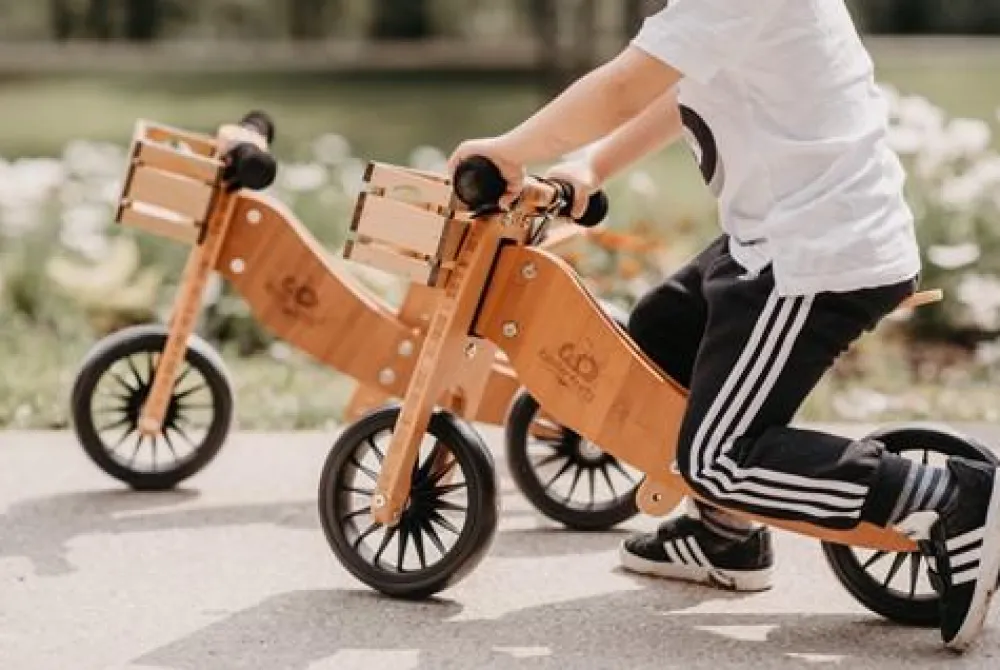 En løbecykel har ikke pedaler, så dit barn skal “løbe” cyklen frem med benene på jorden og rumpen i sædet. Den er super til at forbedre krydskoordinationen og balancen fra børnene er små .