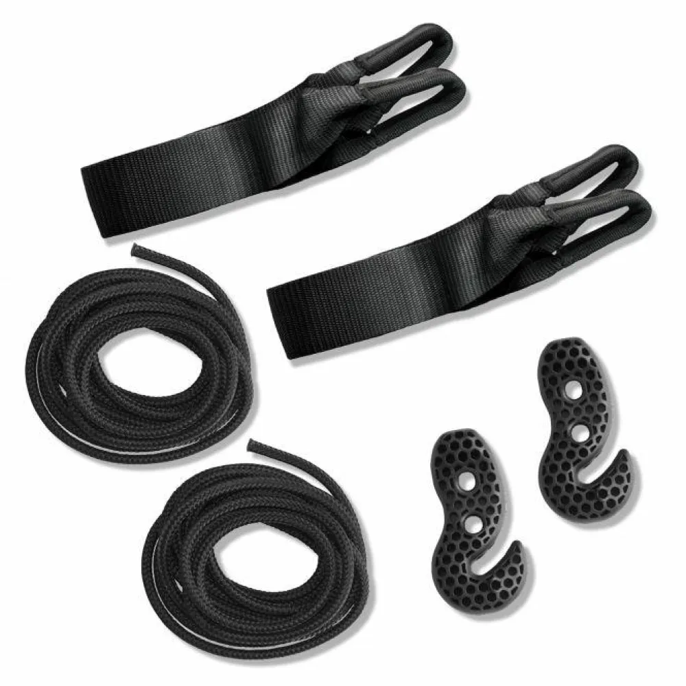I dette sæt er der en lang dobbelt strop, som du bare vikler rundt om træet, og så kan du montere hængekøjen i den justerbare krog. Med den kan du nemt indstille højden på hængekøjen, så den kan bruges af både børn og voksne.