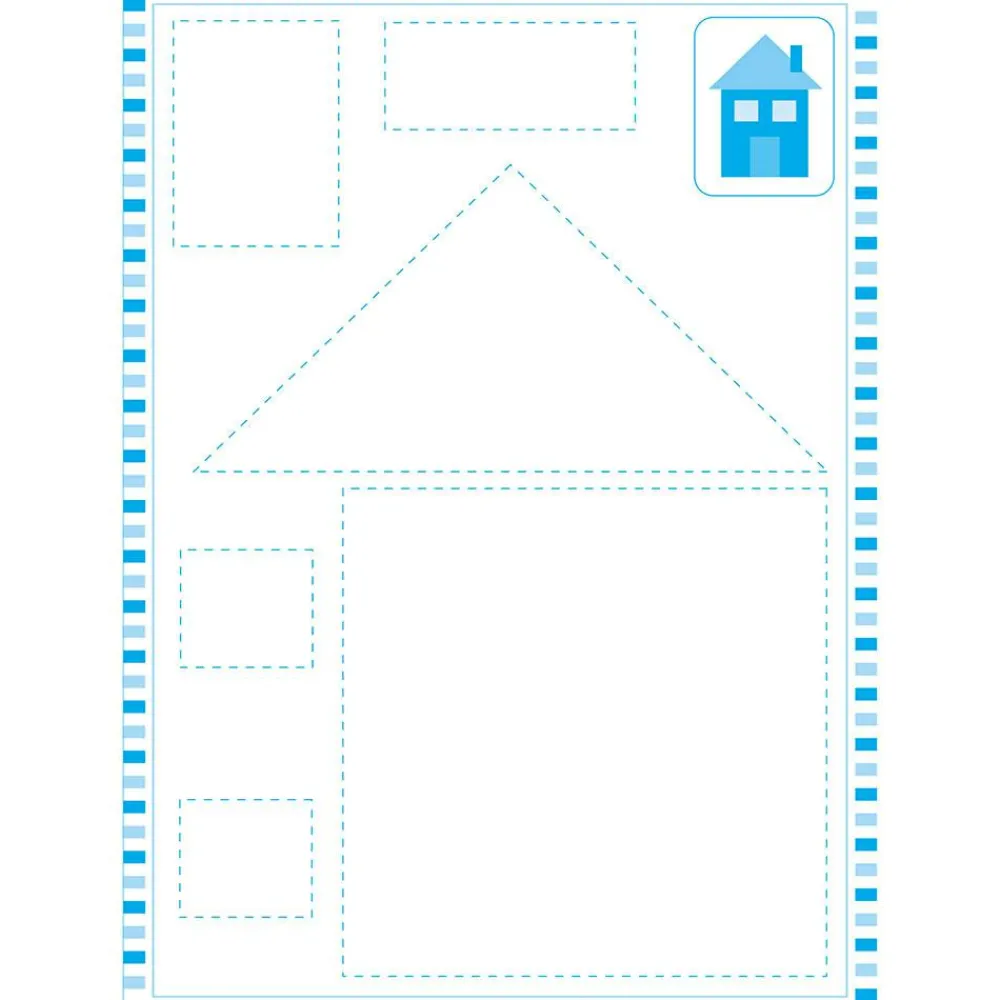3 skabeloner, 1 sikkerhedssaks, der kun kan klippe i papir, 3 ark blankt papir.