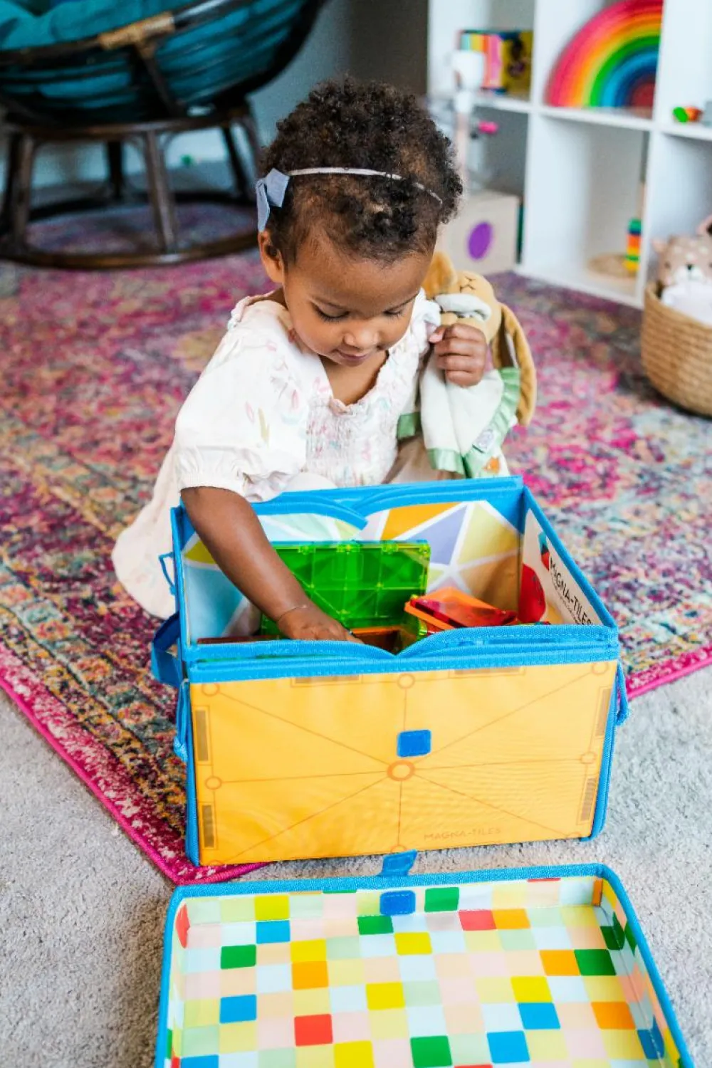 Supersmart måde at lege med og bagefter opbevare Magna-Tiles eller andet legetøj på.