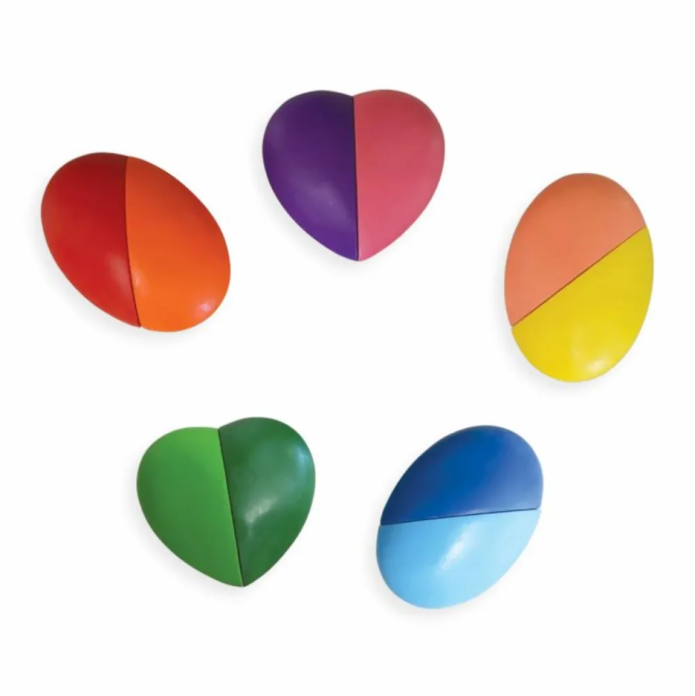 Hvert af de 6 farvekridt er sat sammen af to farver. Farveblokkene kan tvistes, så den enten har form som et hjerte eller som en oval.