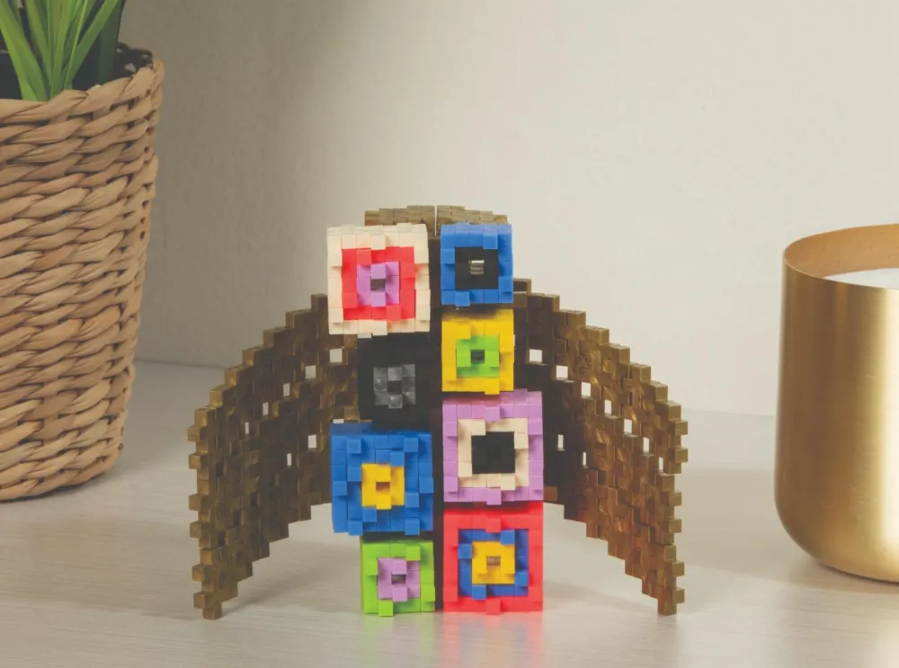 De er formet som små plus-tegn og kan sættes sammen på alle leder og kanter, som træner kreativitet og STEM-forståelse på samme tid.