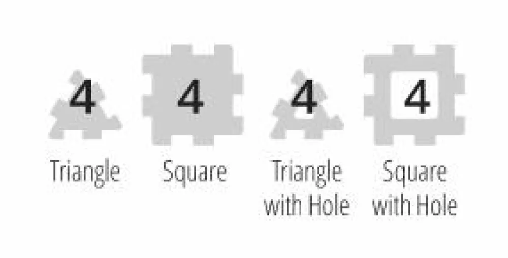 Her er 4 trekanter, 4 firkanter samt 4 firkanter med kighul og 4 trekanter med kighul.