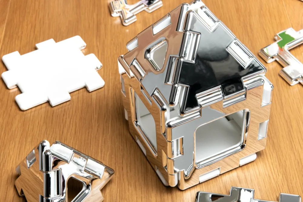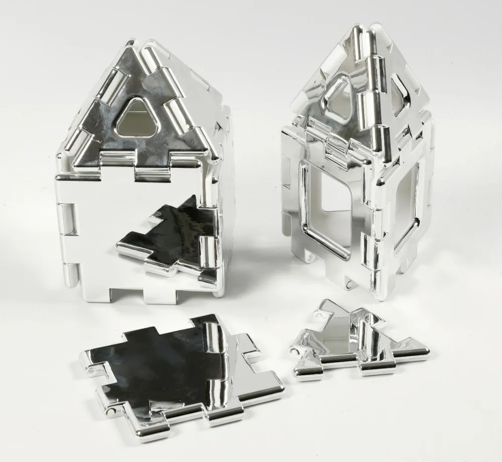 Dette sæt på 16 stk har spejle på den ene side, som giver byggelegen en sej stemning af rumstation, spejllabyrint eller eventyr. Det er da ekstra sjovt at bygge, når man samtidig kan se sig selv, hvad der sker bag ved én eller se, hvordan de forskellige vinkler spejler forskellige bidder af omverdenen.