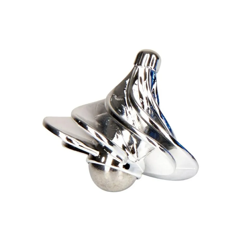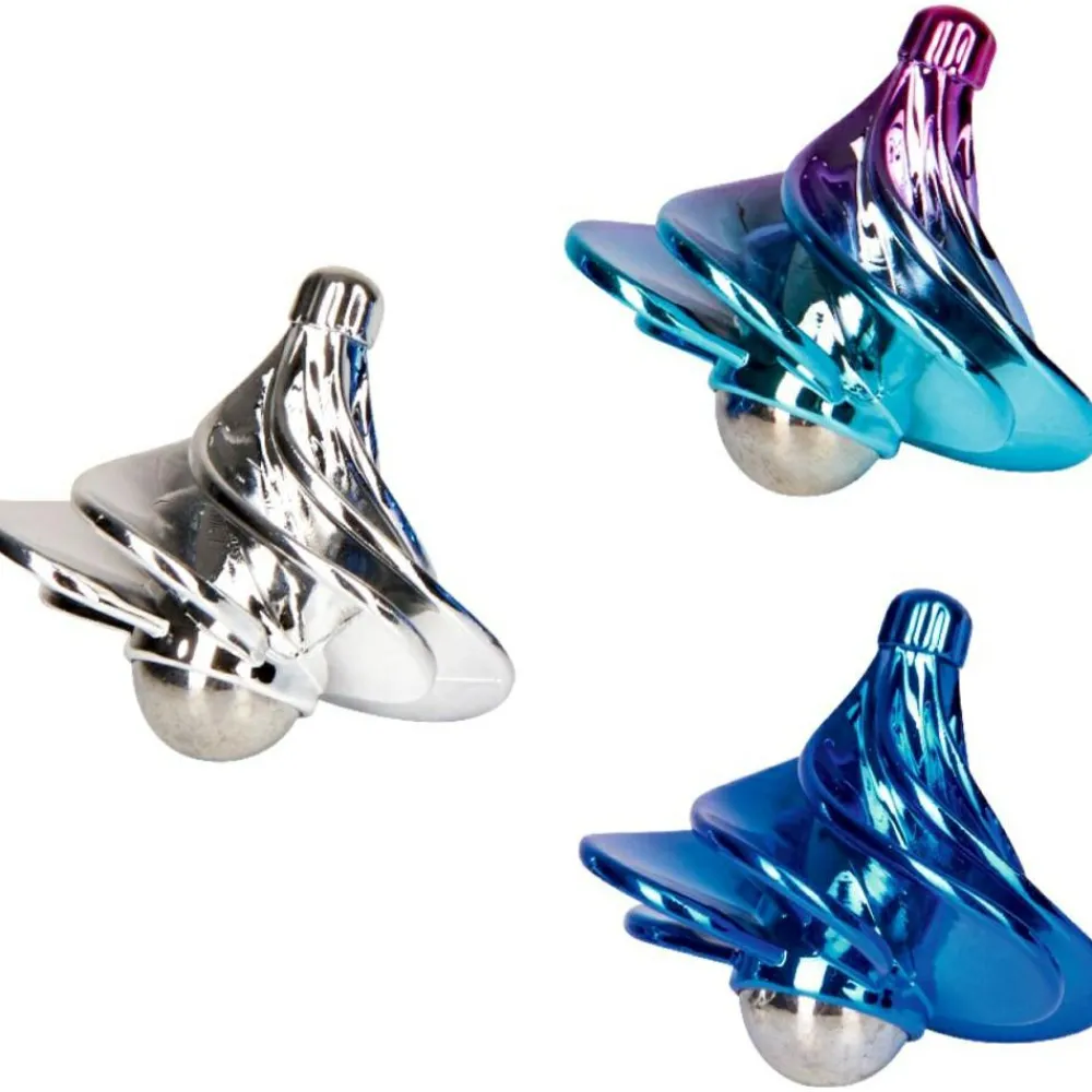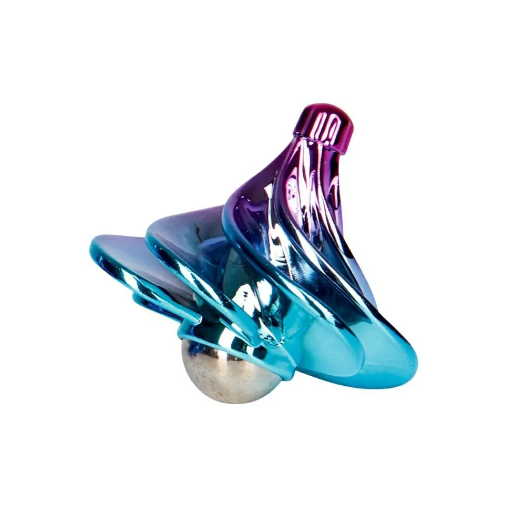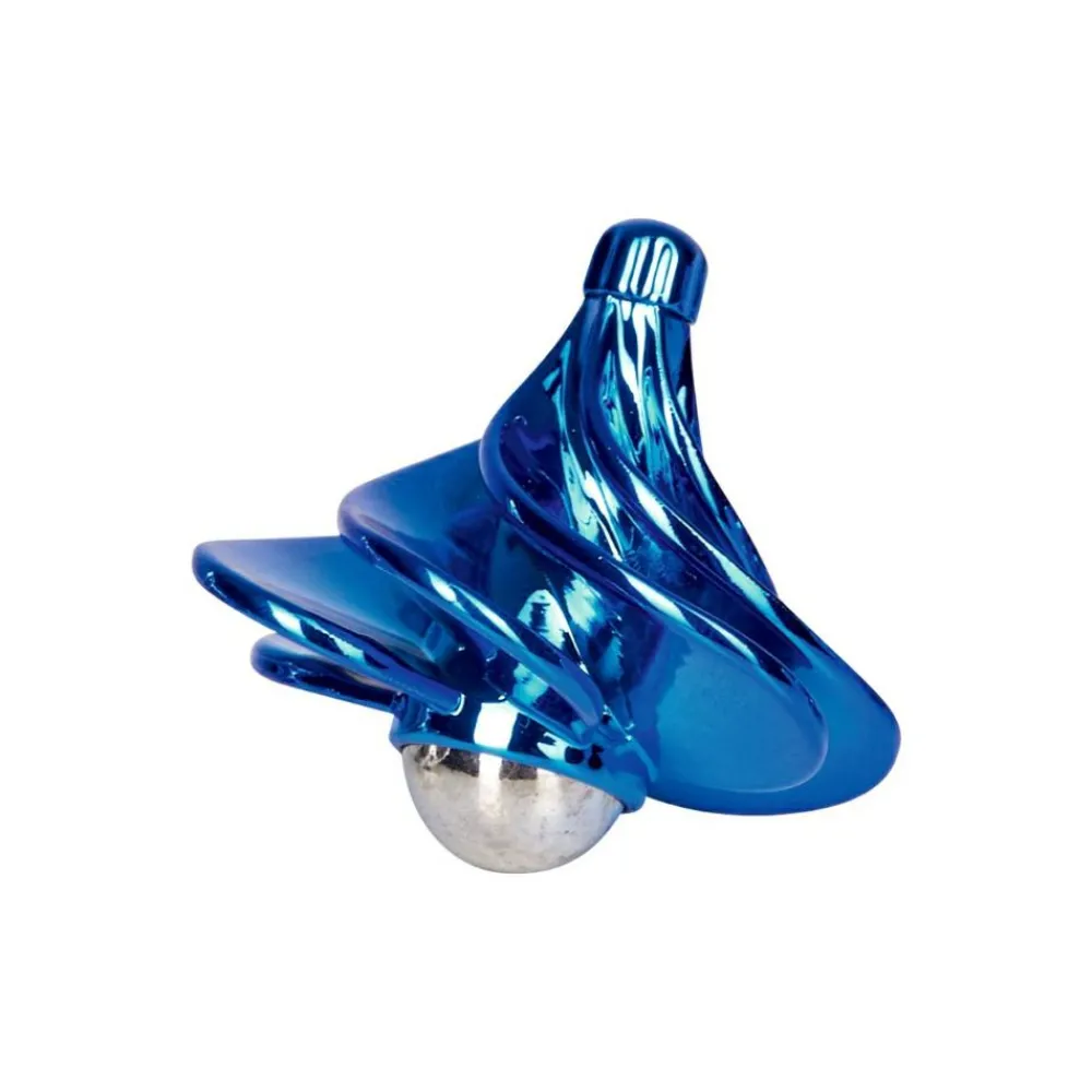 En pustesnurretop. Ja den er god nok. Vend beholderen og sæt snurretoppen på bunden. Der kan den snurre ved at du puster til den – og blive ved så længe du orker at holde den igang.