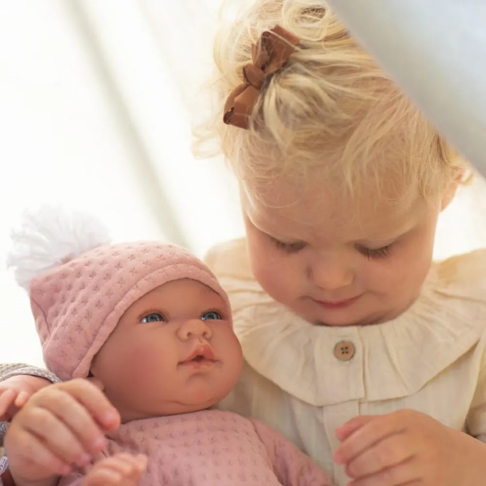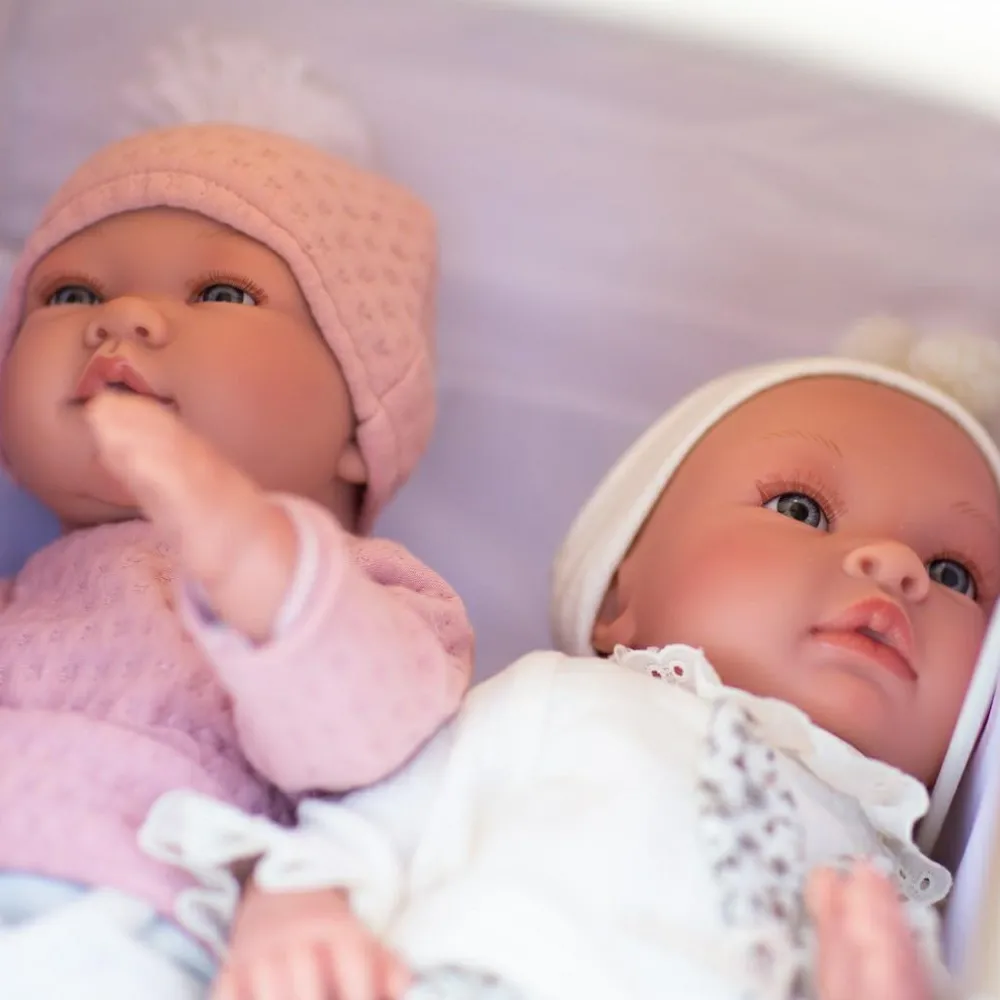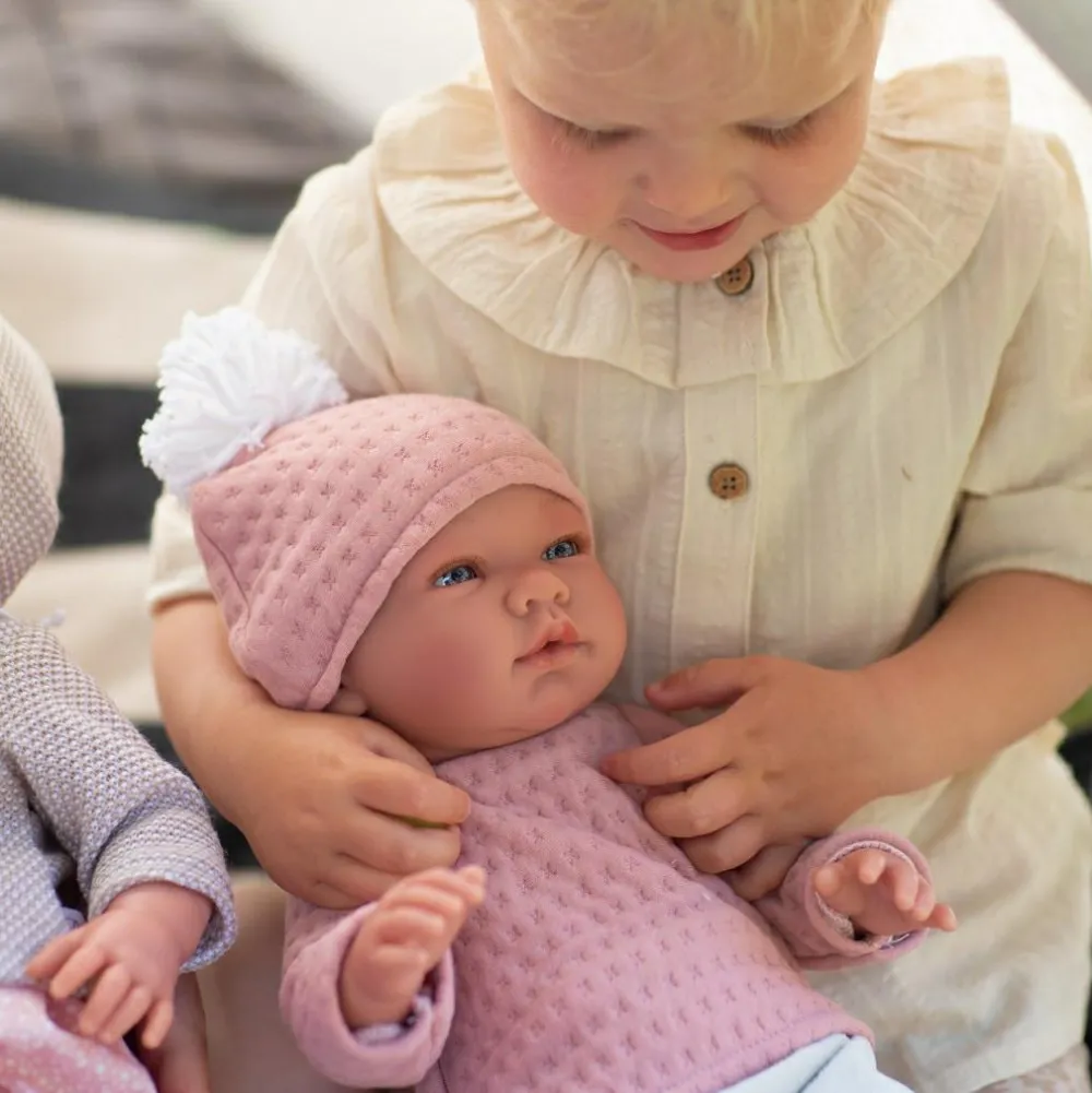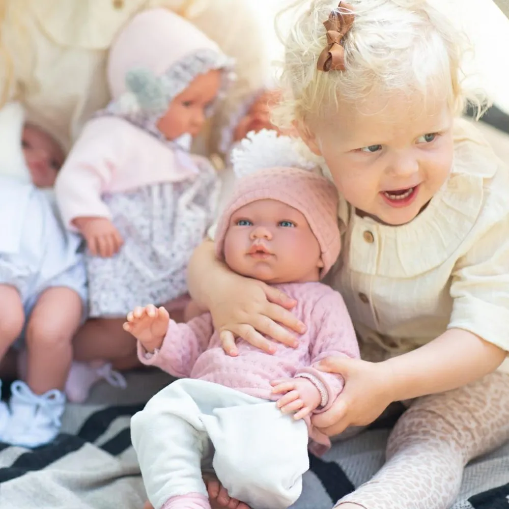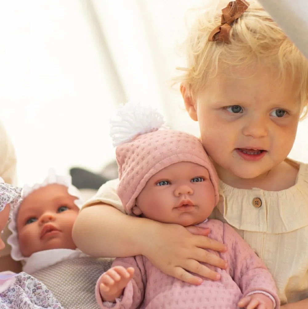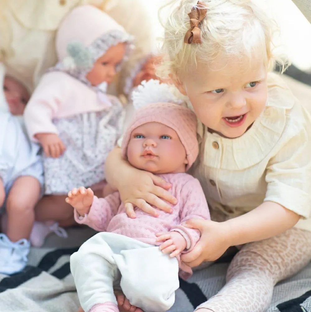 Así dukkerne er meget livagtige og findes i forskellige størrelser – den største er på størrelse med en sød, nyfødt baby. Denne dukke måler 43 cm.