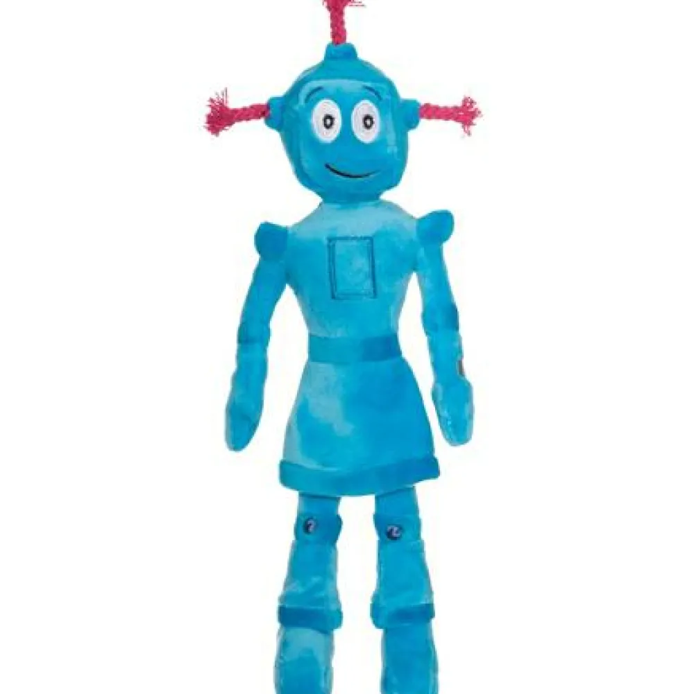 Klonk er en robot i flot, klar blå med 3 pink fletninger og mod på det meste.