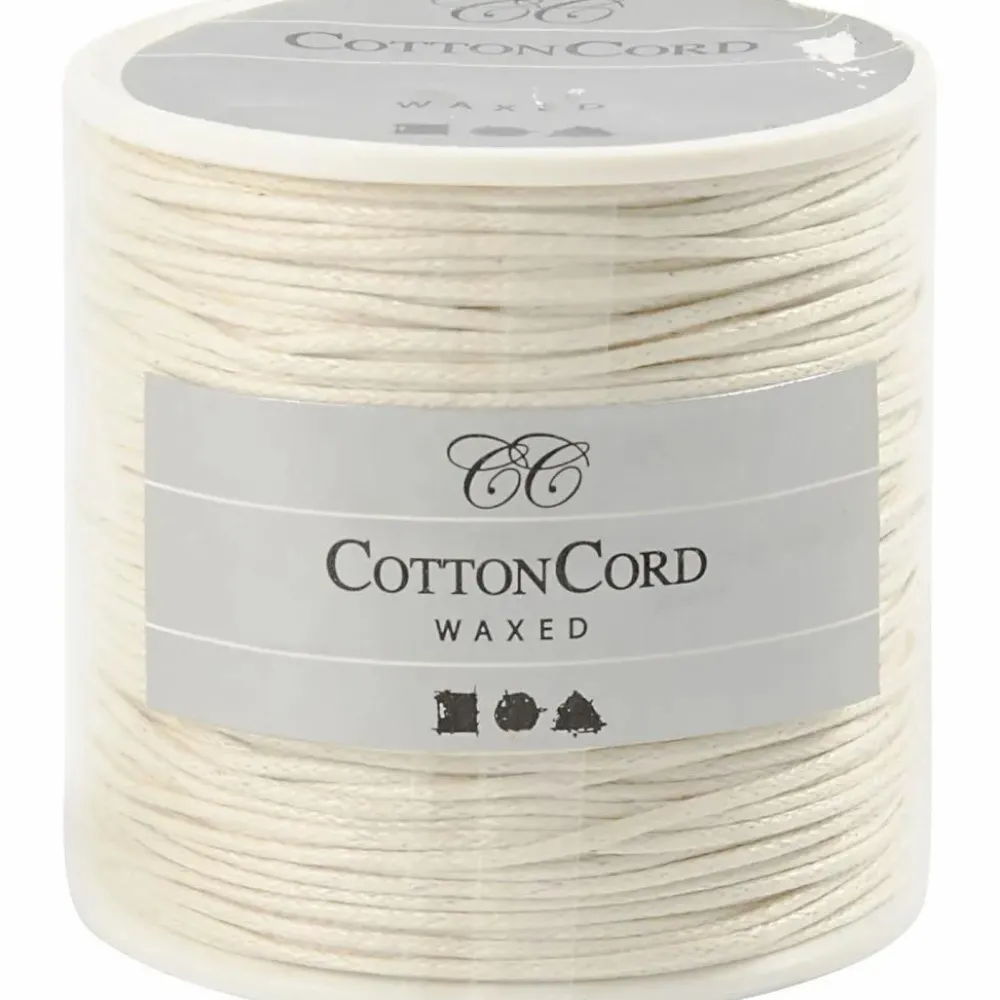 Behandlet med et lag voks så den ikke så nemt trævler eller flosser. Voksen gør også snoren ekstra stærk.