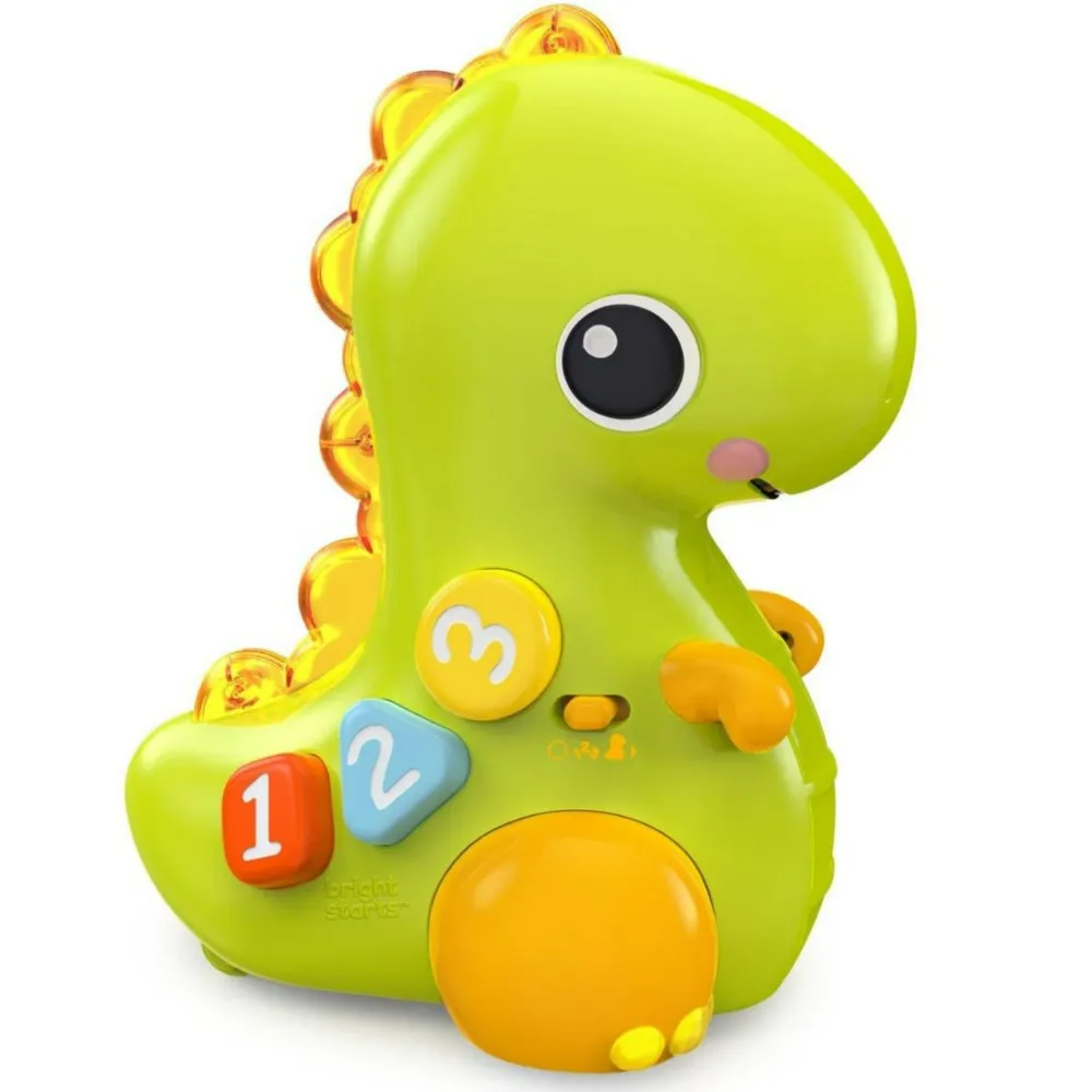 Der er tre knapper med tal på, som dit barn kan trykke på for mere lyd, når det har fået fat på dinoen.
