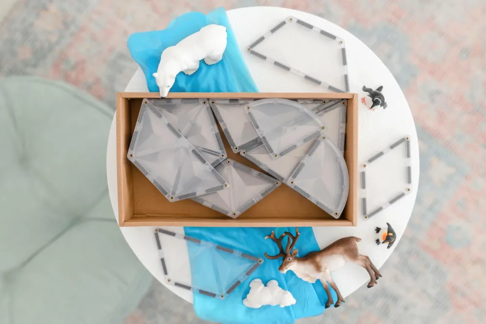 Sættet her kommer med bl.a. romber, trekanter og femkanter, som gerne vil bygges til store Elsa-slotte, broer, raketter med mere. Byggeriet er nemmere at gøre stabilt, end hvis dit barn bygger af fx flere mindre magnetbrikker.