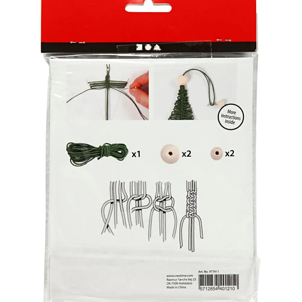 Posen indeholder: Grønt knyttegarn, træperler. Der medfølger en vejledning.