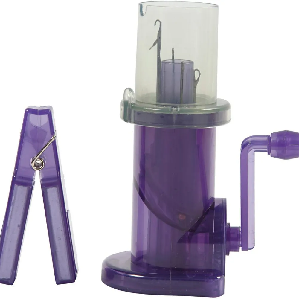 Har I prøvet en flittiglise? Med en strikkemølle tages flittiglisen et niveau op. Når møllen først er trådet, er det blot at svinge håndtaget. I maskinens modsatte ende dannes en strikket snor, som kan bruges som hårbånd, bælte, kjolestropper, hanke, hundesnor, ja, hvad som helst.