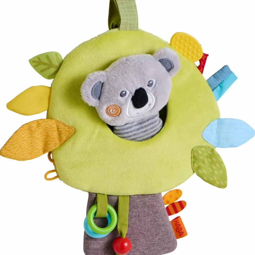 Dette søde legetøj til babyer er både en legeplads og et hyggeligt gemmested for en lille koala. Den er fyldt med farverige elementer, lige til at gribe fat i, og den har endda et skjult rum, hvor en lille plyskoala sidder og venter på at blive fundet.