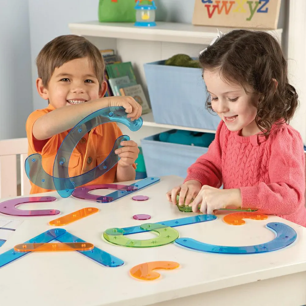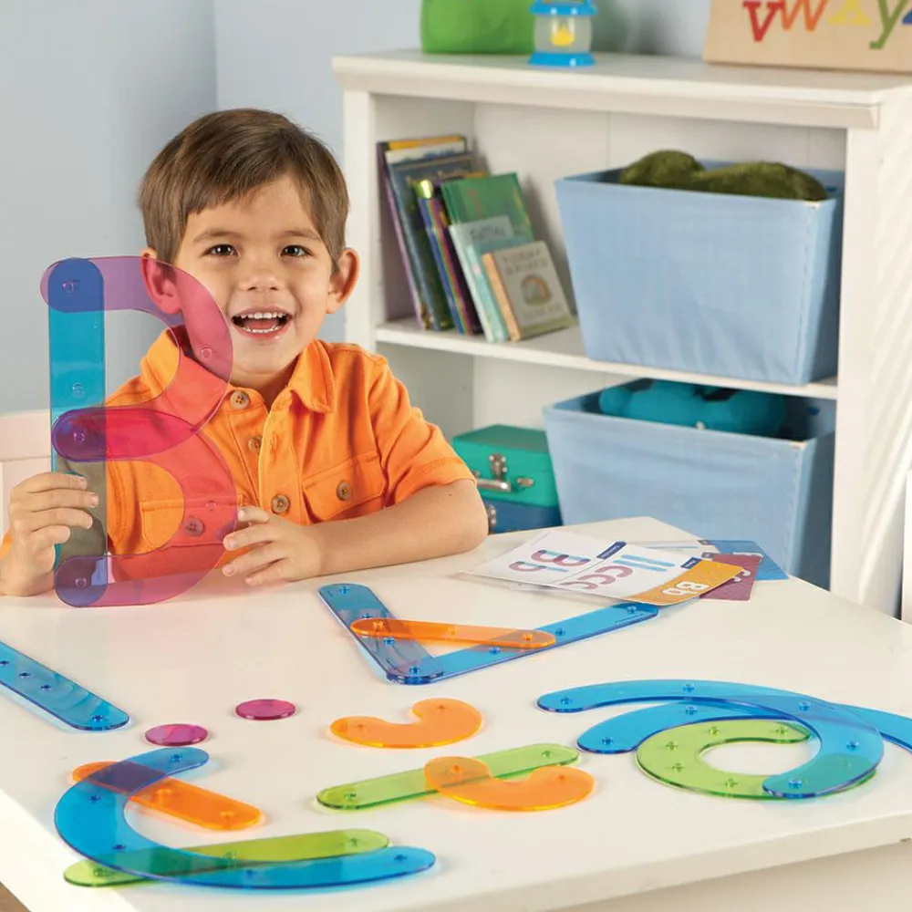 Dit barn bruger delene i sættet som har hver sin farvekode til at opbygge et bogstav. Bogstavet finder dit barn på et af aktivitetskortene. Ved at klikke delene sammen kan dit barn både kreere store og små bogstaver.