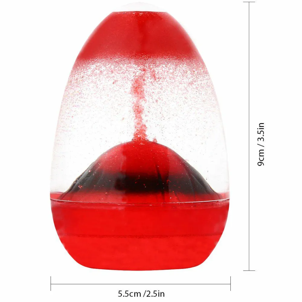 Wauw … glimmerdrys. Vulkanen fungerer, som vi kender det fra snekugler. Her er det i stedet en vulkan i udbrud, hvor der drysser glimmer, når den har været en gang på hovedet.