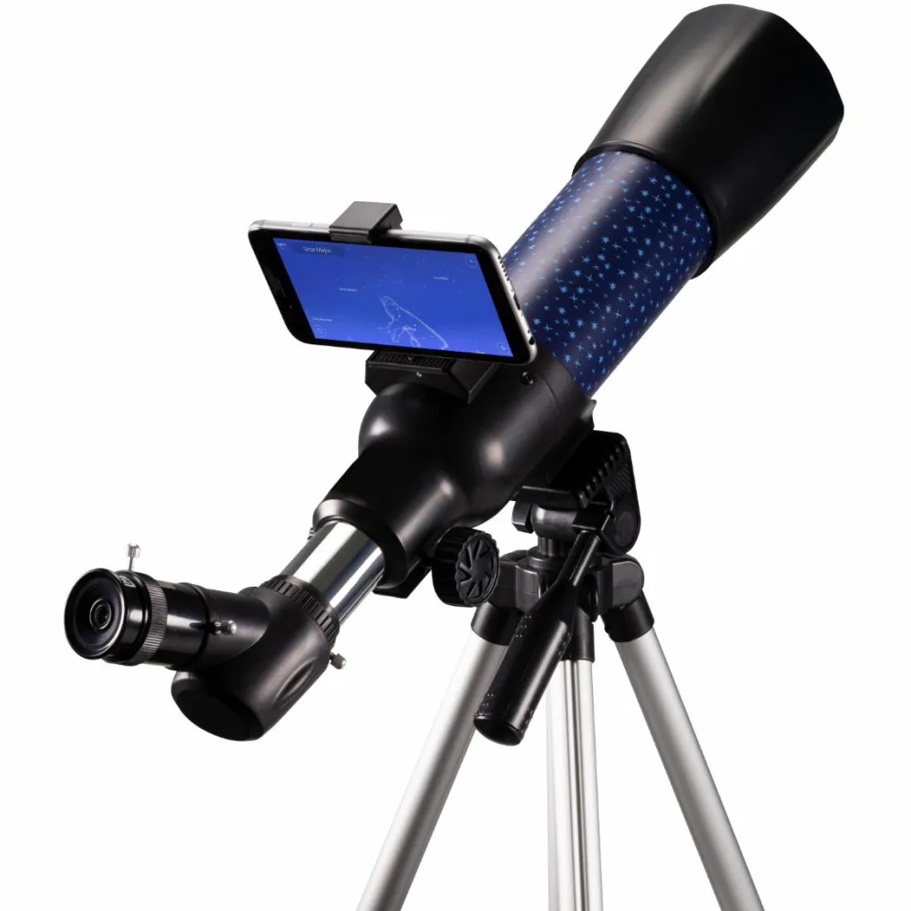 Med smartphone-adapteren kan I tage flotte billeder af det, I ser gennem kikkerten. Desuden får du en AR-app med, så du altid ved, hvad det nu er, stjernebilledet hedder, som du peger teleskopet på.
