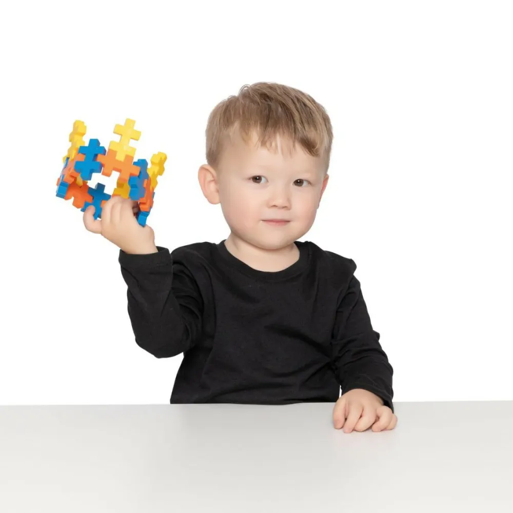Brikkerne ligner små plusser og kan sættes sammen på alle leder og kanter – og de findes i et væld af farver og i både små (2 x 1,2 x 0,4 cm) og store (5 x 3 x 1 cm). Dejligt byggelegetøj, som alle børn bliver helt vilde med. Det styrker dit barns forståelse for geometri og logik at lege med Plus-Plus. Forslag og bunkevis af vejledninger til Plus-Plus kan du finde frem på fx YouTube.