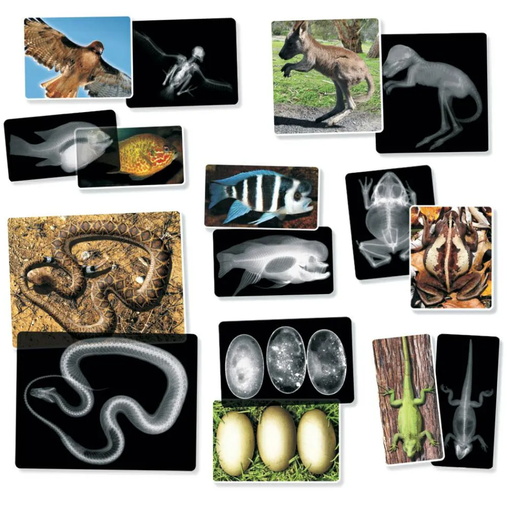 Hvordan ser dyrene ud indeni? Det kan dit barn blive klogere på med disse flotte røntgenbilleder og matchende fotos, som viser både pattedyr, fisk og fugle.
